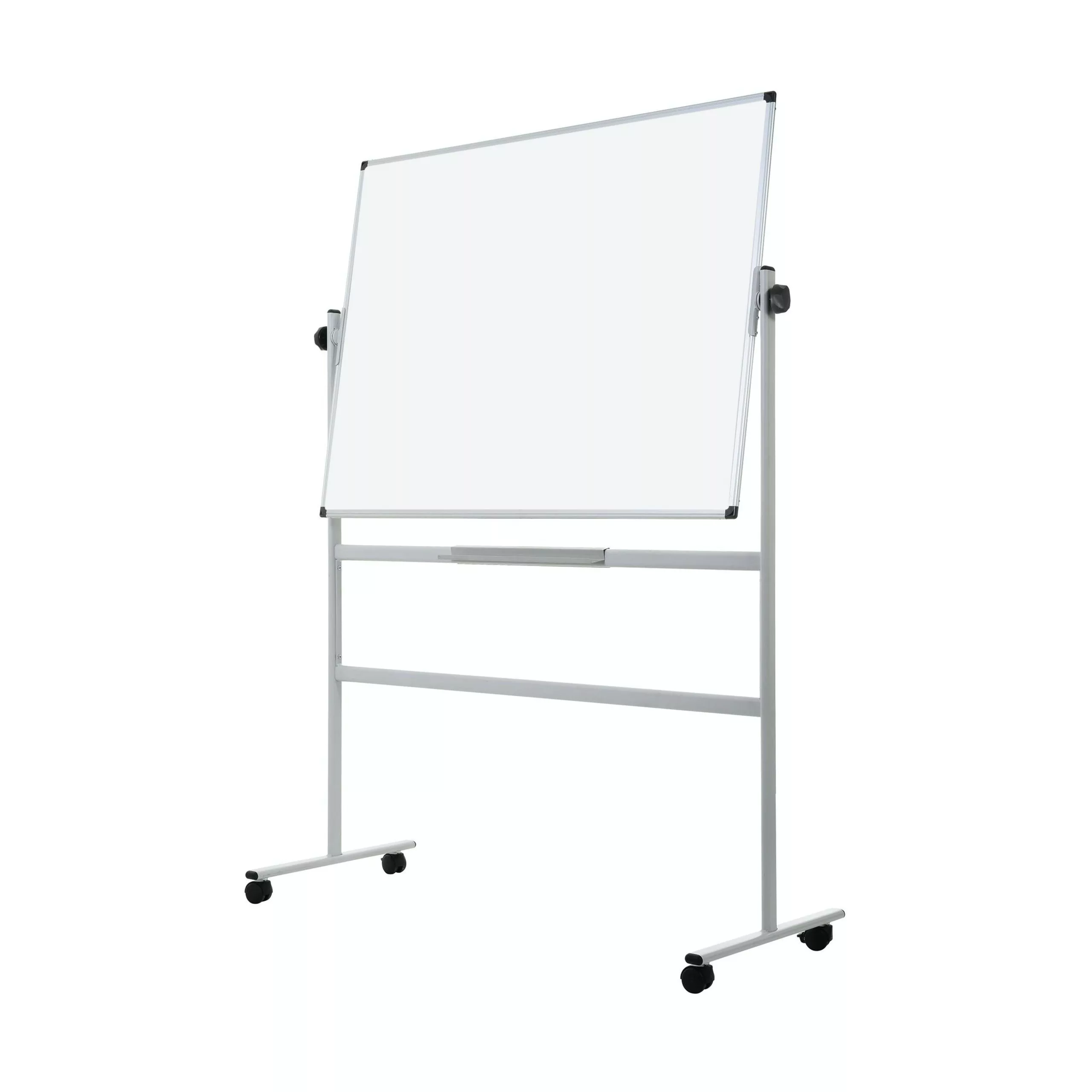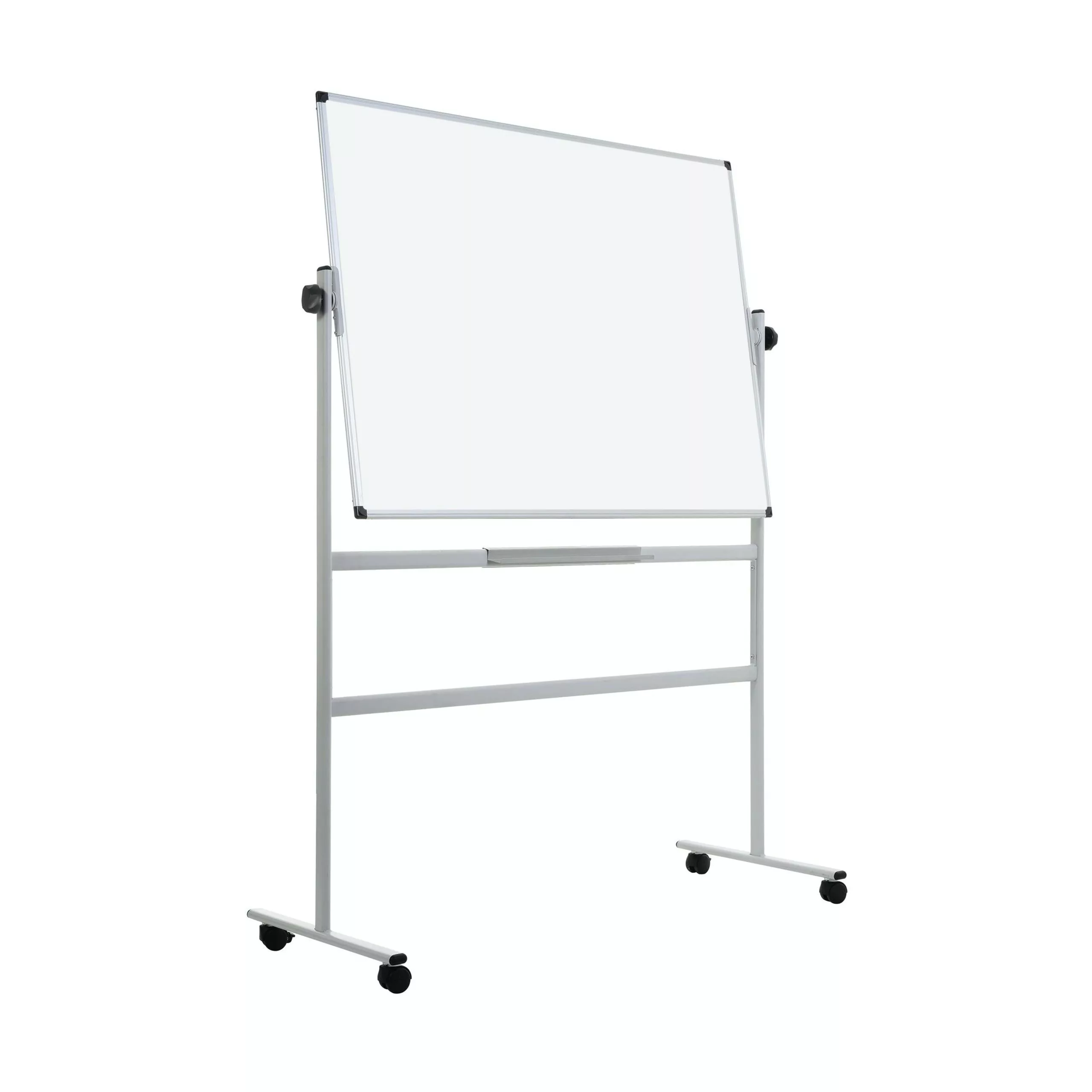 Bi-Office Revolving Whiteboard mit doppelseitiger magnetischer trocken abwischbarer Oberfläche, ideal für den häufigen Gebrauch, verdoppelt die Schreibfläche, die durch einfaches Drehen des Boards genutzt werden kann. Dies ermöglicht auch, dass Informationen zuvor aufbereitet und verdeck werden, bis sie benötigt werden. Die Produktstruktur ist aus pulverbeschichtetem Stahl, wodurch sie langlebig ist und dank der 4 feststellbaren Rollen auch leicht von Raum zu Raum bewegt werden kann. Dies ist ein ideales Produkt für Schulen, Ausbildungszentren, Freizeitzentren, Büros, Besprechungsräume, Labore und vieles mehr. Beide Seiten überzeugen als glatte, magnetische trocken abwischbare Oberflächen. Ideal zum Erstellen von Organigrammen oder Zeichnen von Diagrammen. Drehen Sie die Tafel einfach um die horizontale Achse, um mit der Arbeit an einer neuen Oberfläche zu beginnen.