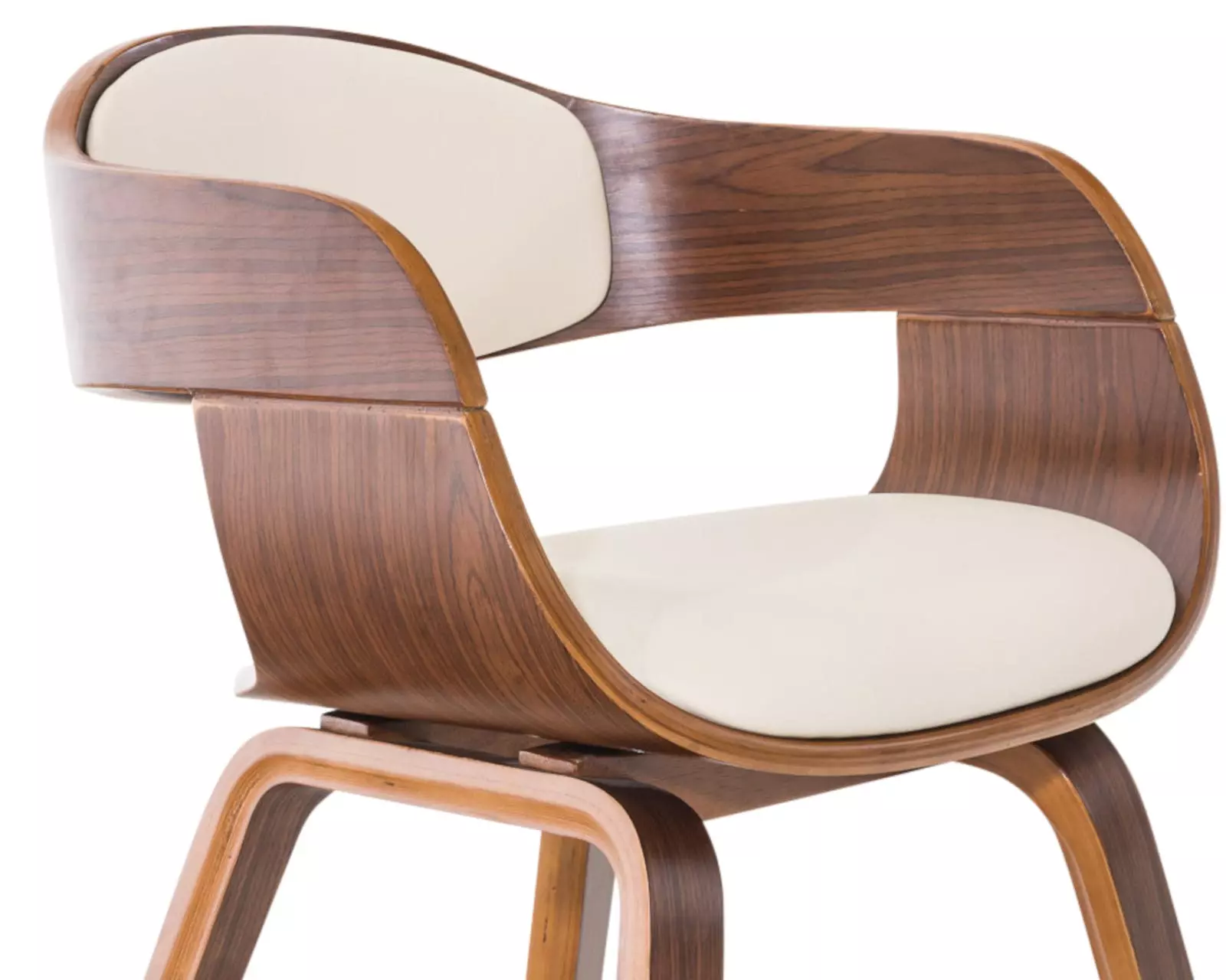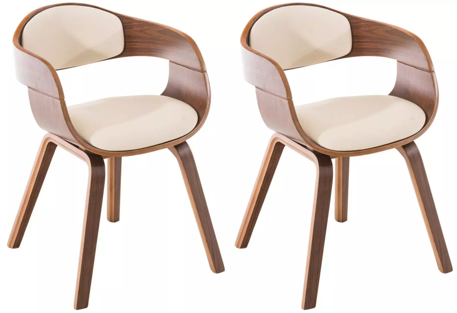 Die Stühle bestehen aus einer robusten Holzsitzschale, die im Rücken- und Sitzbereich mit einer hochwertigen Polsterung aus formstabilem Kaltschaum und einem Kunstlederbezug versehen ist.