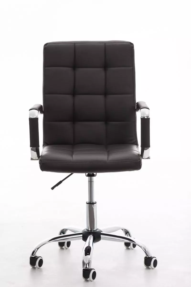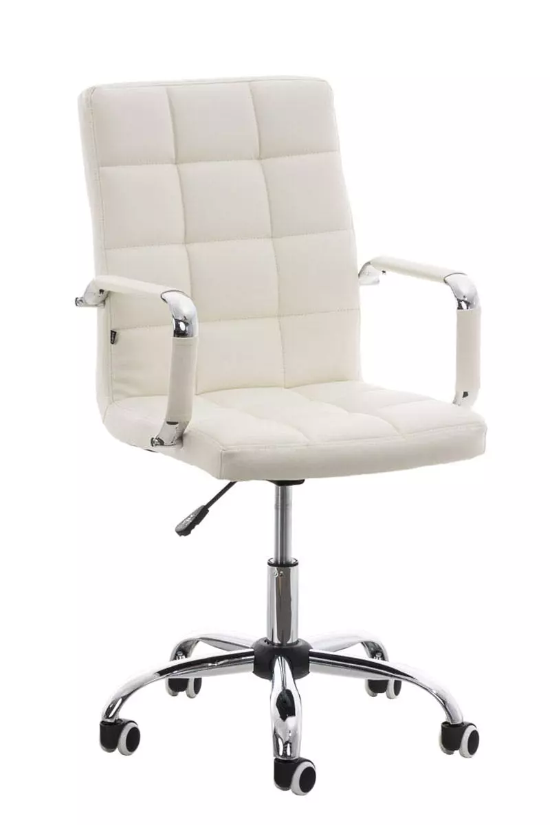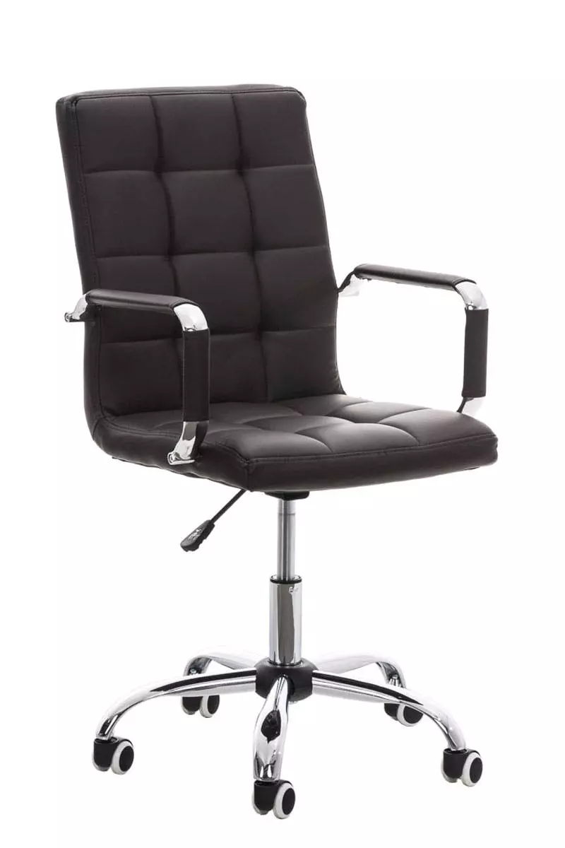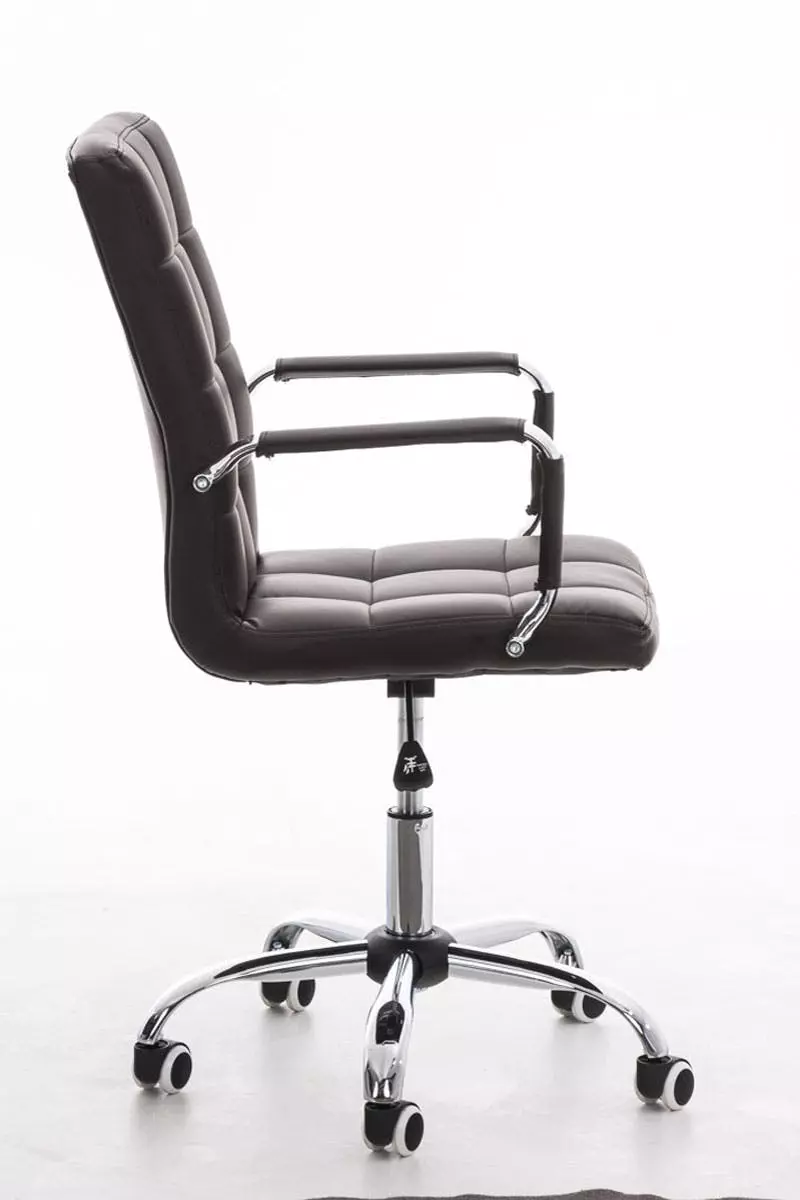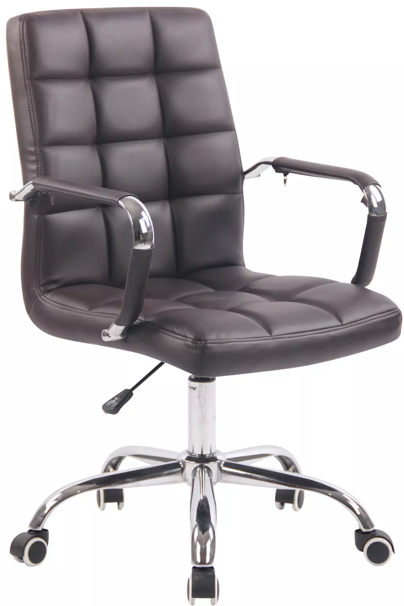 Der Bürosessel Deli V2 beeindruckt durch sein modernes Design und bietet durch die Rückenlehne hohen Komfort während des Arbeitens. Dieser exklusive Bürostuhl Deli V2 ist mit einer sehr hochwertigen Polsterung und Kunstlederbezug versehen. Kunstlederbezüge haben den Vorteil, dass sie elastisch sind und sich bei Entlastung wieder glatt ziehen. Dies sieht nicht nur schöner aus, sondern erhöht zusätzlich die Lebensdauer des Sitzbezuges. Das Gestell ist aus Metall in Chromoptik und dadurch sehr stabil. Dank der verstellbaren Sitzhöhe ist ergonomisches Sitzen garantiert. Die Sitzhöhe ist mit dem Hebel unter dem Sitz stufenlos verstellbar. Der Bürostuhl steht standsicher auf fünf Leichtlaufrollen. Egal ob Hart- oder Teppichböden – Sie werden immer leicht und locker über den Boden rollen können.