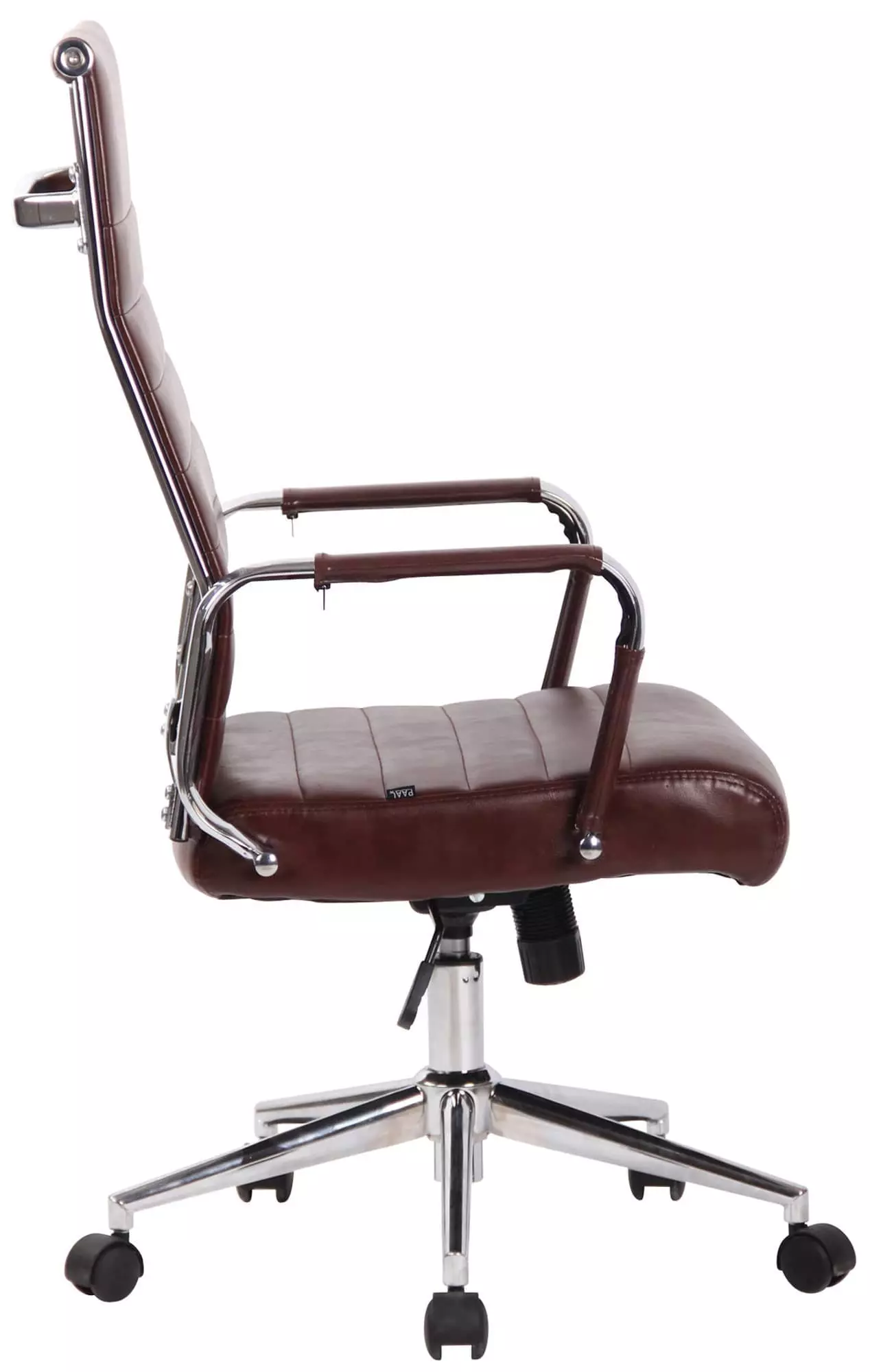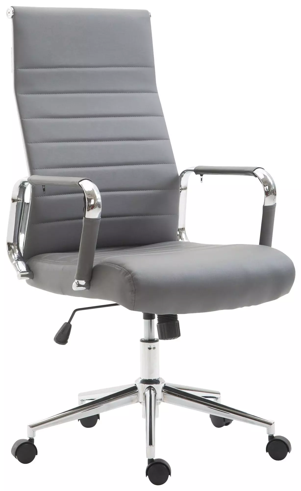 Der exklusive Bürostuhl Kolumbus überzeugt nicht nur mit seinem modernen Look, auch in Sachen Komfort kann ihm keiner etwas vormachen. Seine hochwertige Polsterung und der pflegeleichte Kunstlederbezug sorgen für ein angenehmes Sitzgefühl auch über mehrere Stunden. Zudem ist die Sitzhöhe stufenlos verstellbar und garantiert ein ergonomisches Sitzen. Des Weiteren ist der Schreibtischstuhl mit einem Wippmechanismus versehen, der für mehr Bewegungsfreiheit sorgt. Das elegante Metallgestell in Chrom-Optik und die stabil geschwungenen Armlehnen mit Kunstlederbezug geben dem Ganzen noch das gewisse Extra. Die Stabilität wird durch das Chromoptik Metallgestell gewährleistet, das mit dem schwarzen Bezug auch in Schwarz erhältlich ist. Durch die fünf Leichtlaufrollen kann man leicht und locker über den Boden rollen – egal ob auf Hart- oder Teppichböden.