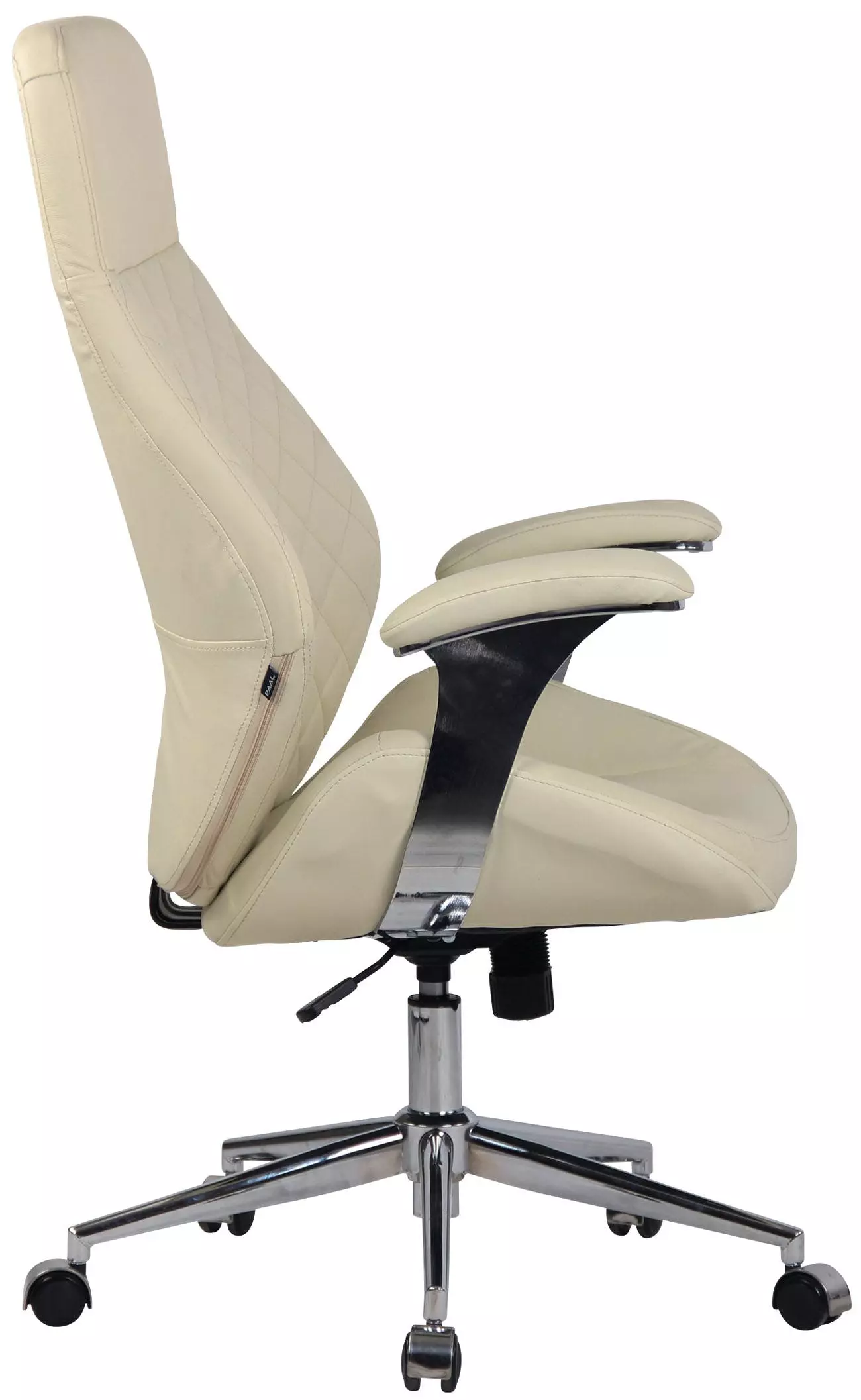 Dieser Bürostuhl Layton überzeugt nicht nur mit seinem modernen Look, auch in Sachen Komfort kann ihm keiner etwas vormachen. Der Drehstuhl ist mit einem pflegeleichten Kunstlederbezug oder Echtlederbezug versehen. Bei der Echtledervariante ist die Sitzfläche und Rückenlehne mit hochwertigem Rindsleder bezogen. Die Rück- und Unterseite ist mit pflegeleichtem Kunstleder bezogen. Dank der angenehmen Polsterung und der Rückenlehne ist optimaler Sitzkomfort auch über einen längeren Zeitraum gewährleistet. Des Weiteren ist die Sitzhöhe stufenlos verstellbar und garantiert ein ergonomisches Sitzen und der Wippmechanismus sorgt für mehr Bewegungsfreiheit. Bei der Kunstledervaiante ist das Untergestell aus Kunststoff und die fünf gummierten Leichtlaufrollen garantieren einen sicheren Stand und sorgen für ein leichtes und lockeres Rollen über Hart- oder Teppichböden. Bei der Echtledervariante handelt sich um ein Metallgestell mit fünf Leichtlaufrollen.