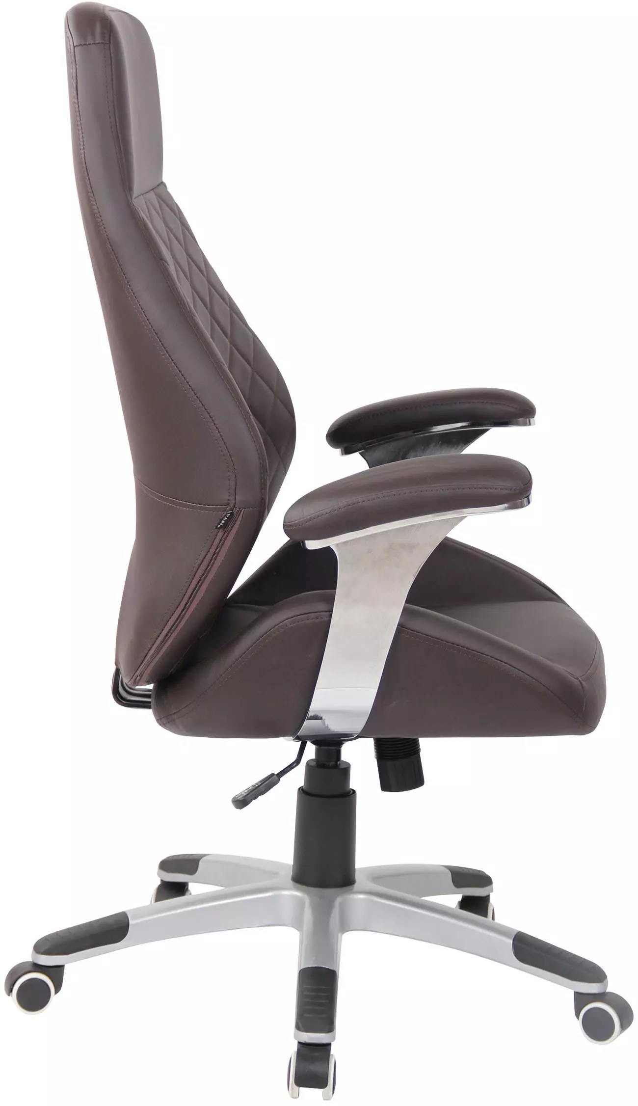 Dieser Bürostuhl Layton überzeugt nicht nur mit seinem modernen Look, auch in Sachen Komfort kann ihm keiner etwas vormachen. Der Drehstuhl ist mit einem pflegeleichten Kunstlederbezug oder Echtlederbezug versehen. Bei der Echtledervariante ist die Sitzfläche und Rückenlehne mit hochwertigem Rindsleder bezogen. Die Rück- und Unterseite ist mit pflegeleichtem Kunstleder bezogen. Dank der angenehmen Polsterung und der Rückenlehne ist optimaler Sitzkomfort auch über einen längeren Zeitraum gewährleistet. Des Weiteren ist die Sitzhöhe stufenlos verstellbar und garantiert ein ergonomisches Sitzen und der Wippmechanismus sorgt für mehr Bewegungsfreiheit. Bei der Kunstledervaiante ist das Untergestell aus Kunststoff und die fünf gummierten Leichtlaufrollen garantieren einen sicheren Stand und sorgen für ein leichtes und lockeres Rollen über Hart- oder Teppichböden. Bei der Echtledervariante handelt sich um ein Metallgestell mit fünf Leichtlaufrollen.