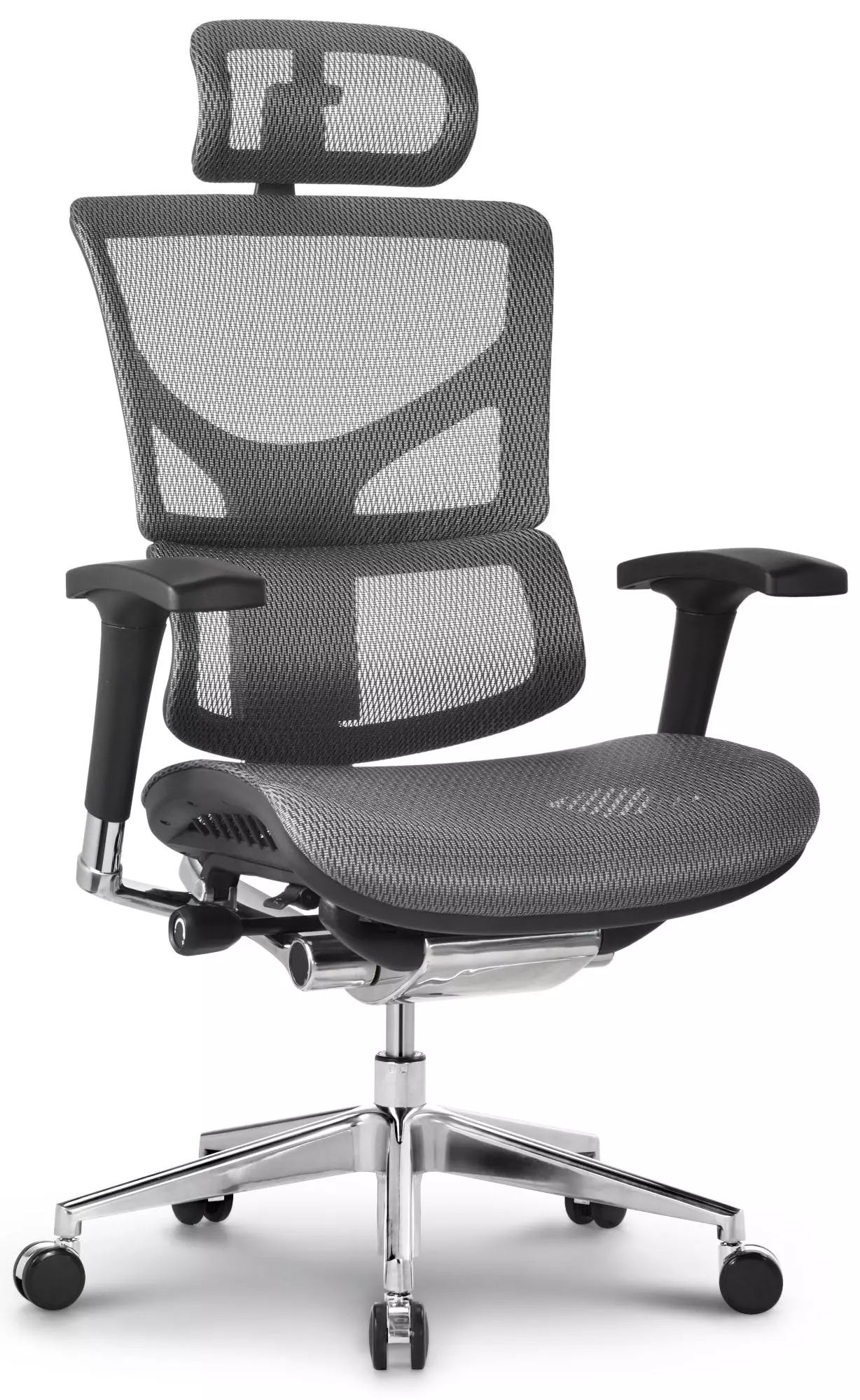 Herzstück des Arbeitsstuhls ist die multifunktionale Rückenlehne. Die vierstufig höhenverstellbare Lehne kann genau auf Ihre Bedürfnisse angepasst werden und die Bandscheiben entlasten. Bis zu 125° lässt sich die Rückenlehne kippen und die Kippspannung kann dabei separat eingestellt werden. Der Drehstuhl verfügt über eine Synchronmechanik, sodass sich die Sitzfläche mit der Rückenlehne in Einklang bewegt. Für noch mehr Ergonomie sorgt neben der Lendenwirbelstütze die 3D-Funktion der Rückenlehne. Dabei können Sie die beiden Hälften des oberen Lehnenteils auf Ihre Bedürfnisse anpassen. In Entspannungsphasen steht Ihnen die in Höhe und Winkel verstellbare Kopfstütze zur Verfügung.