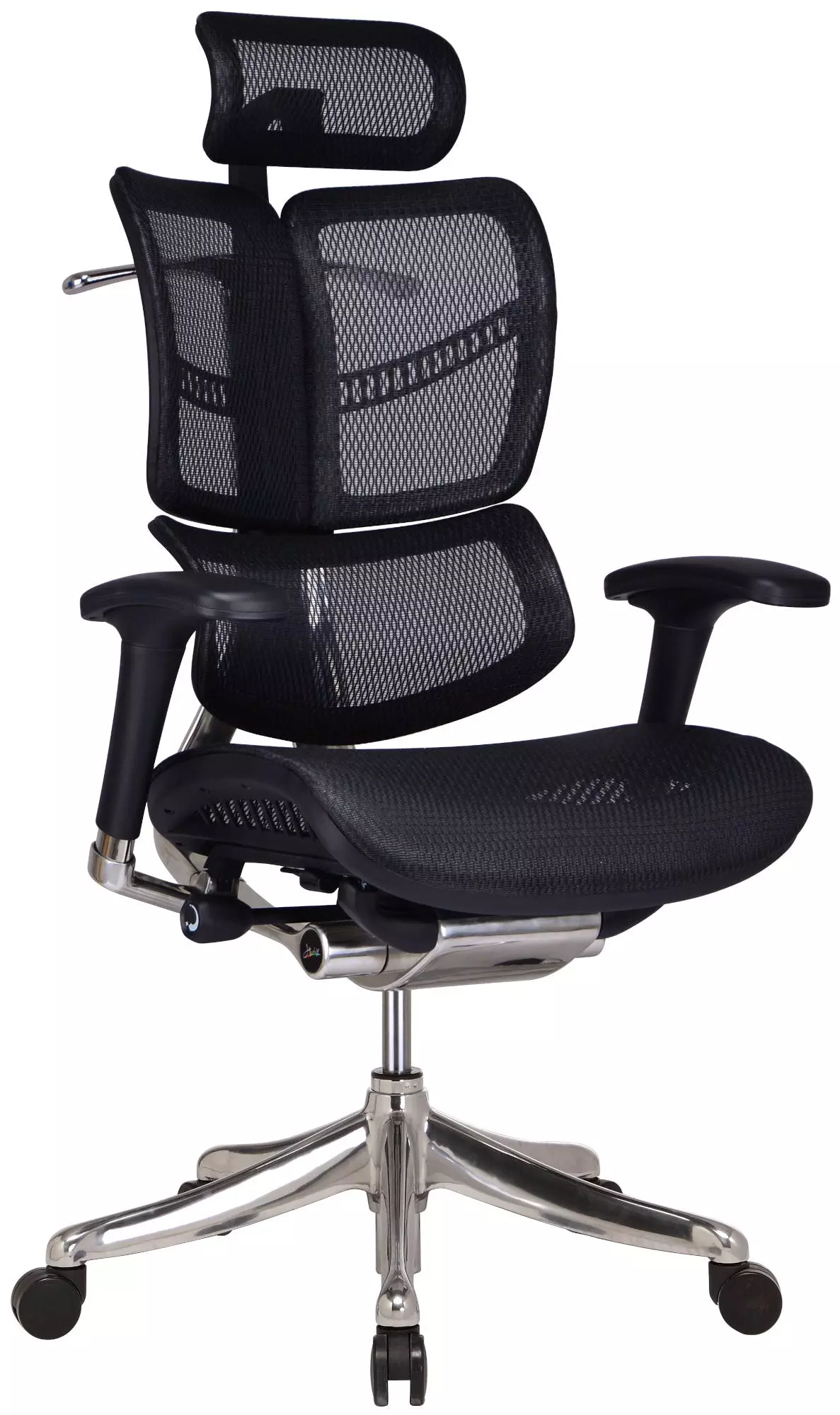 Der Netzbezug ist schick und funktional zugleich. Neben Atmungsaktivität überzeugt der Stoff durch hohe Strapazierfähigkeit. Rahmen und Gestell bestehen aus schwarzem Nylon sowie aus Aluminium in moderner Chrom-Optik. Der Stuhl bewegt sich auf PU-beschichtete Rollen, die empfindliche Böden schonen und geräuscharm sind.