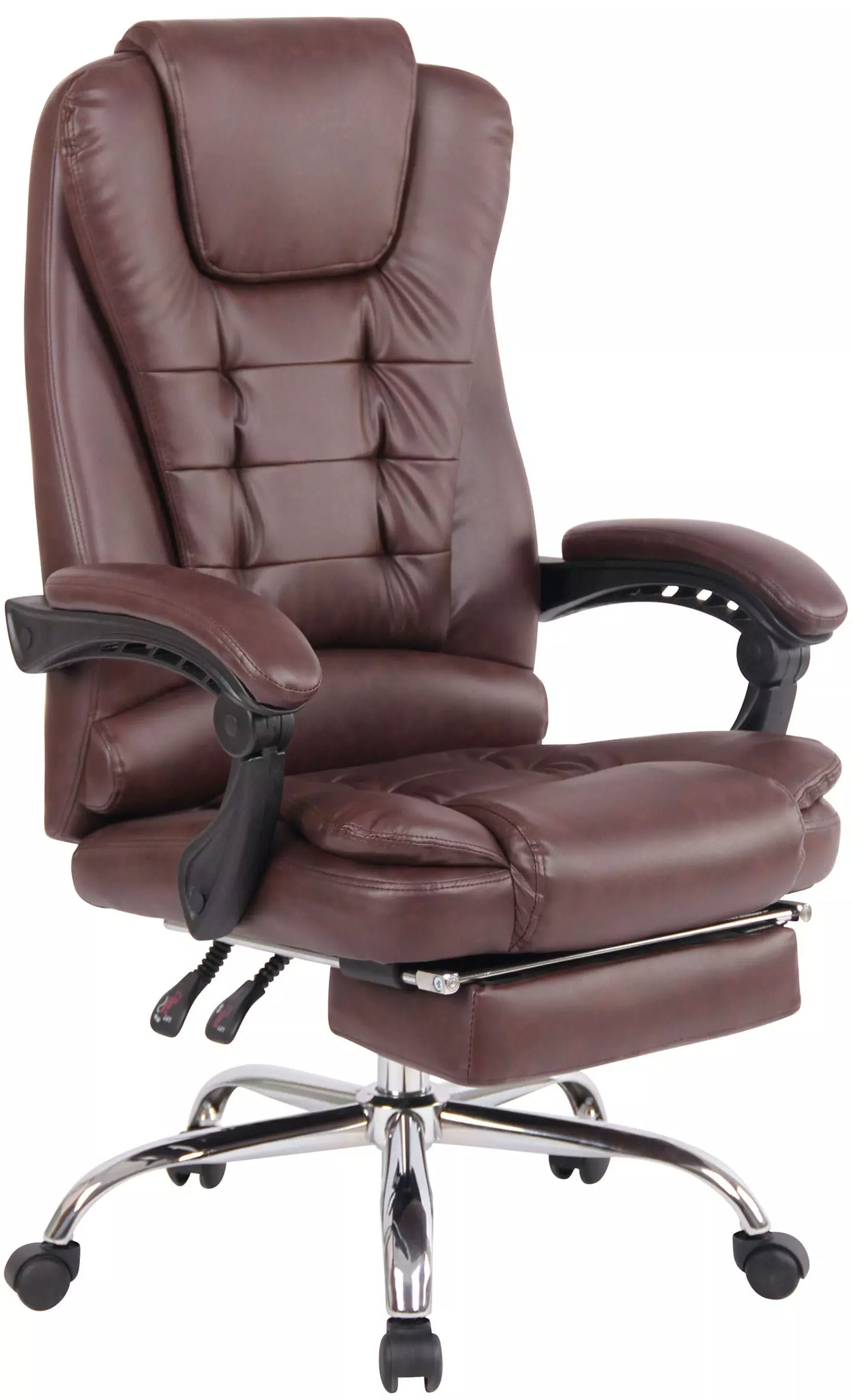 Gemütlichkeit ist mit dem Bürostuhl Oxygen im klassischen Look angesagt. Eine hochwertige Polsterung und ein pflegeleichter Bezug sorgen für ein komfortables Sitzgefühl, welches auch bei längerem Verweilen bestehen bleibt. Die leicht verstellbare Fußstütze und Rückenlehne sorgen zusätzlich für eine angenehme Pause zwischendurch, bei der sich entspannt zurückgelehnt werden darf und die Beine hochgelegt werden können. Dank der stufenlos verstellbaren Sitzhöhe garantiert der Schreibtischstuhl zudem jederzeit ein ergonomisches Sitzen. Dabei steht er standsicher auf fünf Leichtlaufrollen und einem Gestell aus Metall in Chromoptik. Egal ob Hart- oder Teppichböden – man kann immer leicht und locker über den Boden rollen.