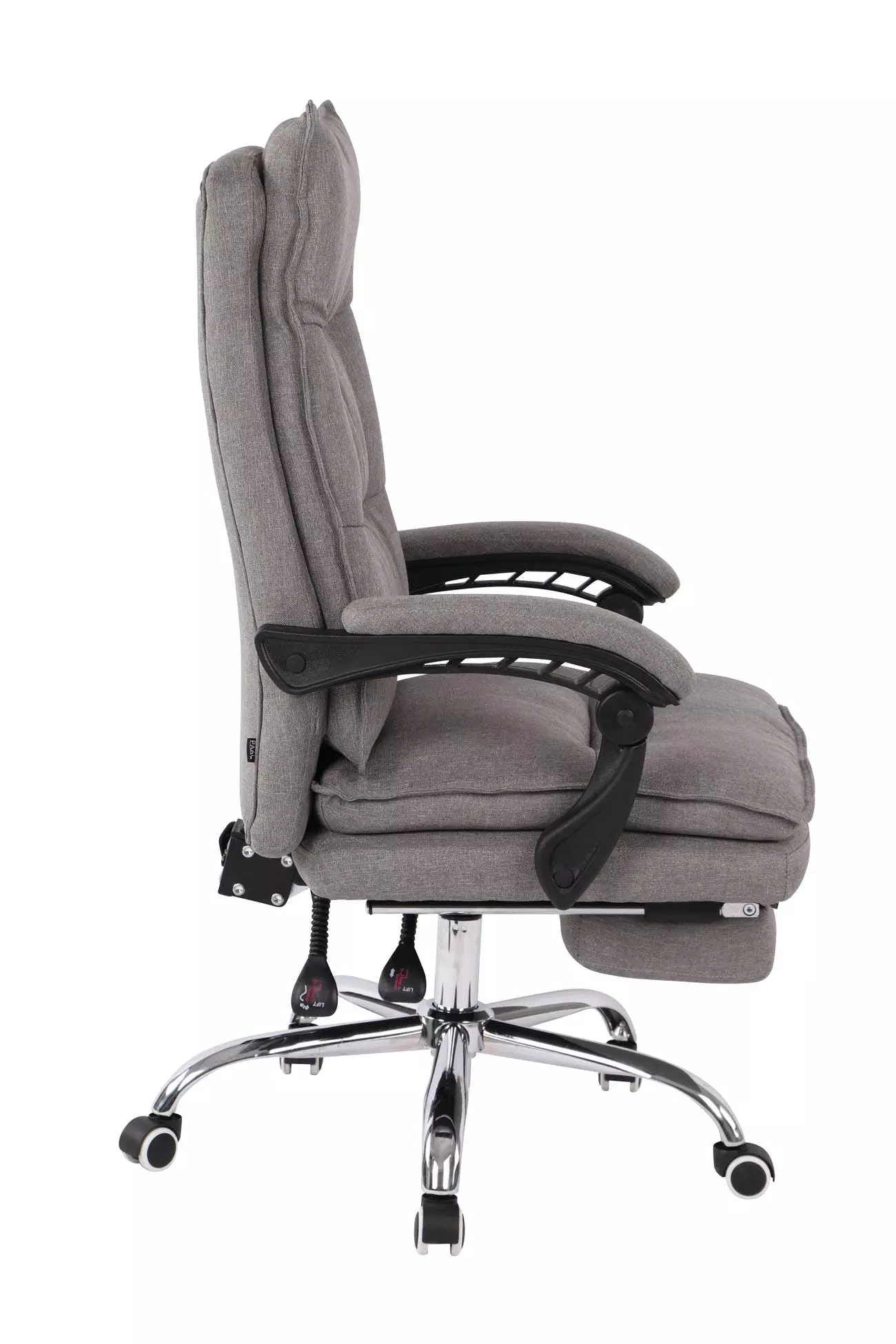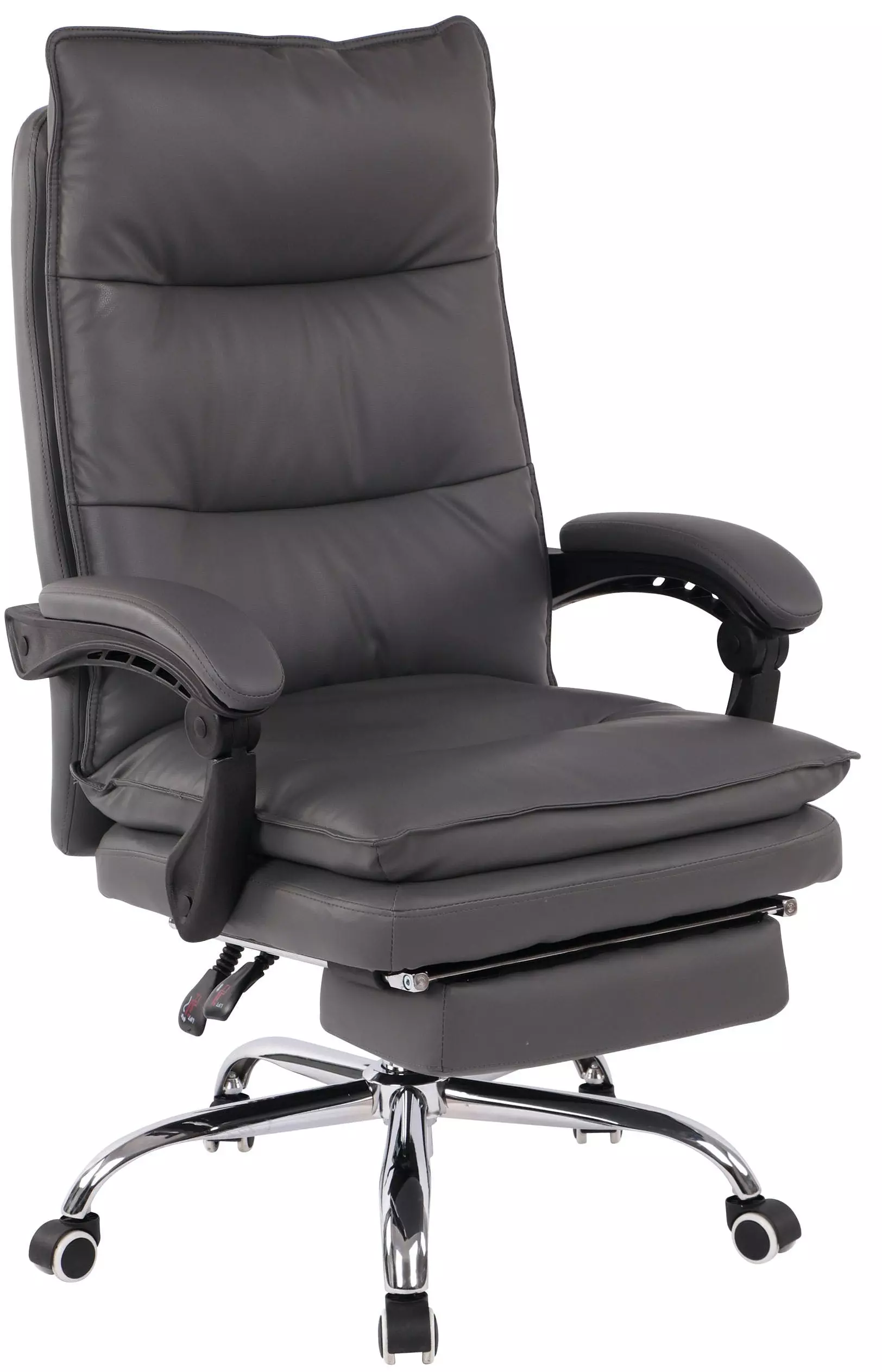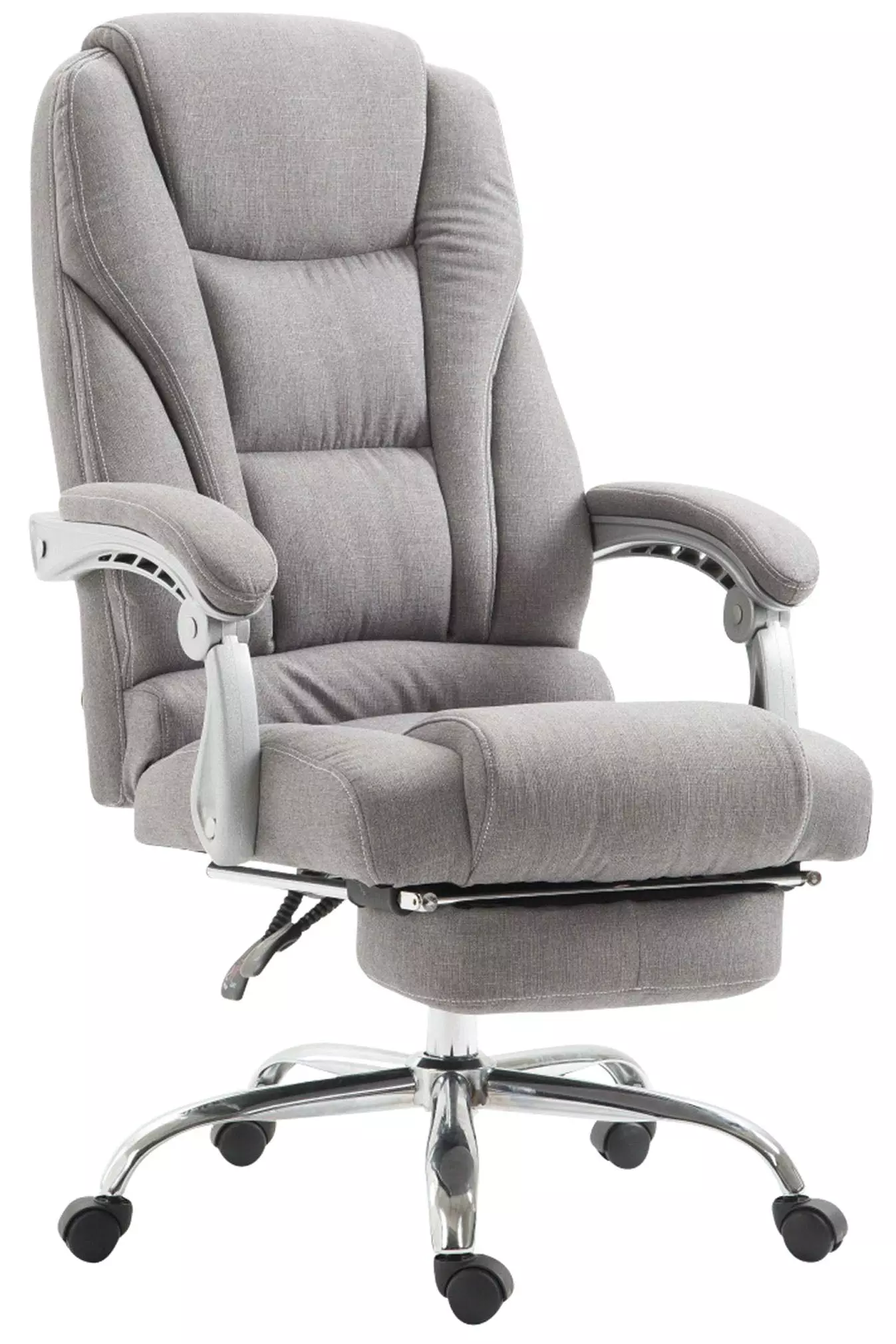 Komfort ist mit dem Bürostuhl Power im klassischen Look angesagt. Eine hochwertige Polsterung und ein pflegeleichter Stoffbezug sorgen für ein komfortables Sitzgefühl, welches auch bei längerem Verweilen bestehen bleibt. Die leicht verstellbare Fußstütze und Rückenlehne sorgen zusätzlich für eine angenehme Pause zwischendurch, bei der sich entspannt zurückgelehnt werden darf und die Beine hochgelegt werden können. Dank der stufenlos verstellbaren Sitzhöhe garantiert der Chefsessel zudem jederzeit ein ergonomisches Sitzen. Dabei steht er standsicher auf fünf Leichtlaufrollen und einem Gestell aus Metall in Chromoptik. Egal ob Hart- oder Teppichböden – man kann immer leicht und locker über den Boden rollen.