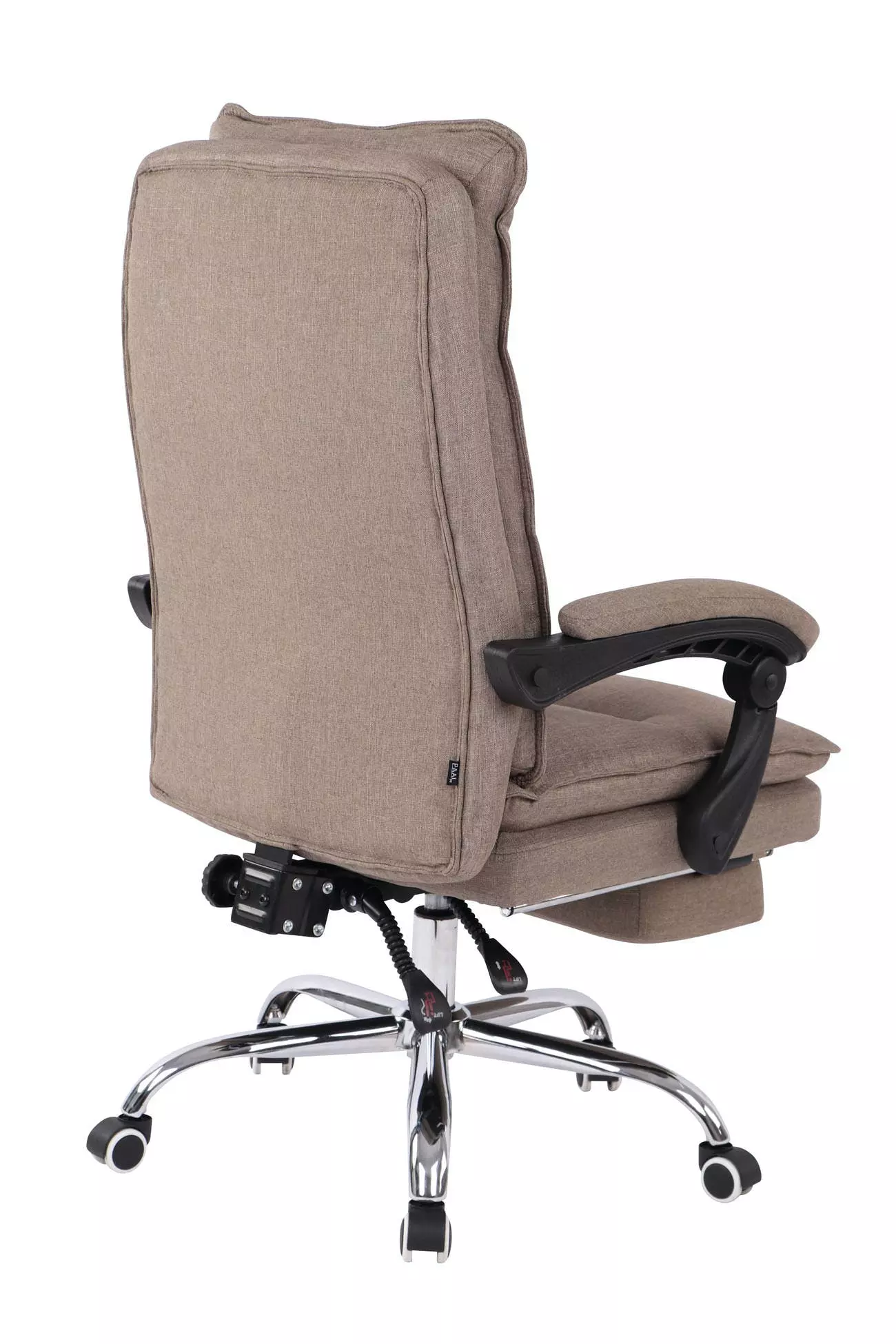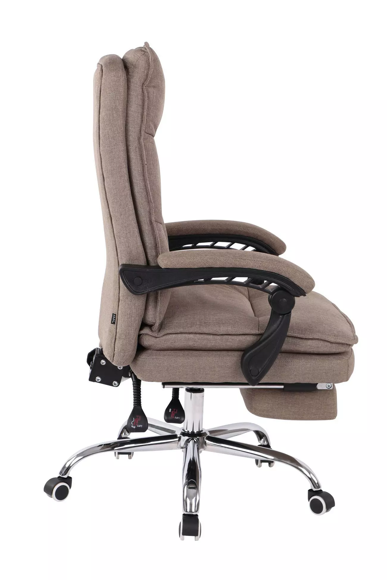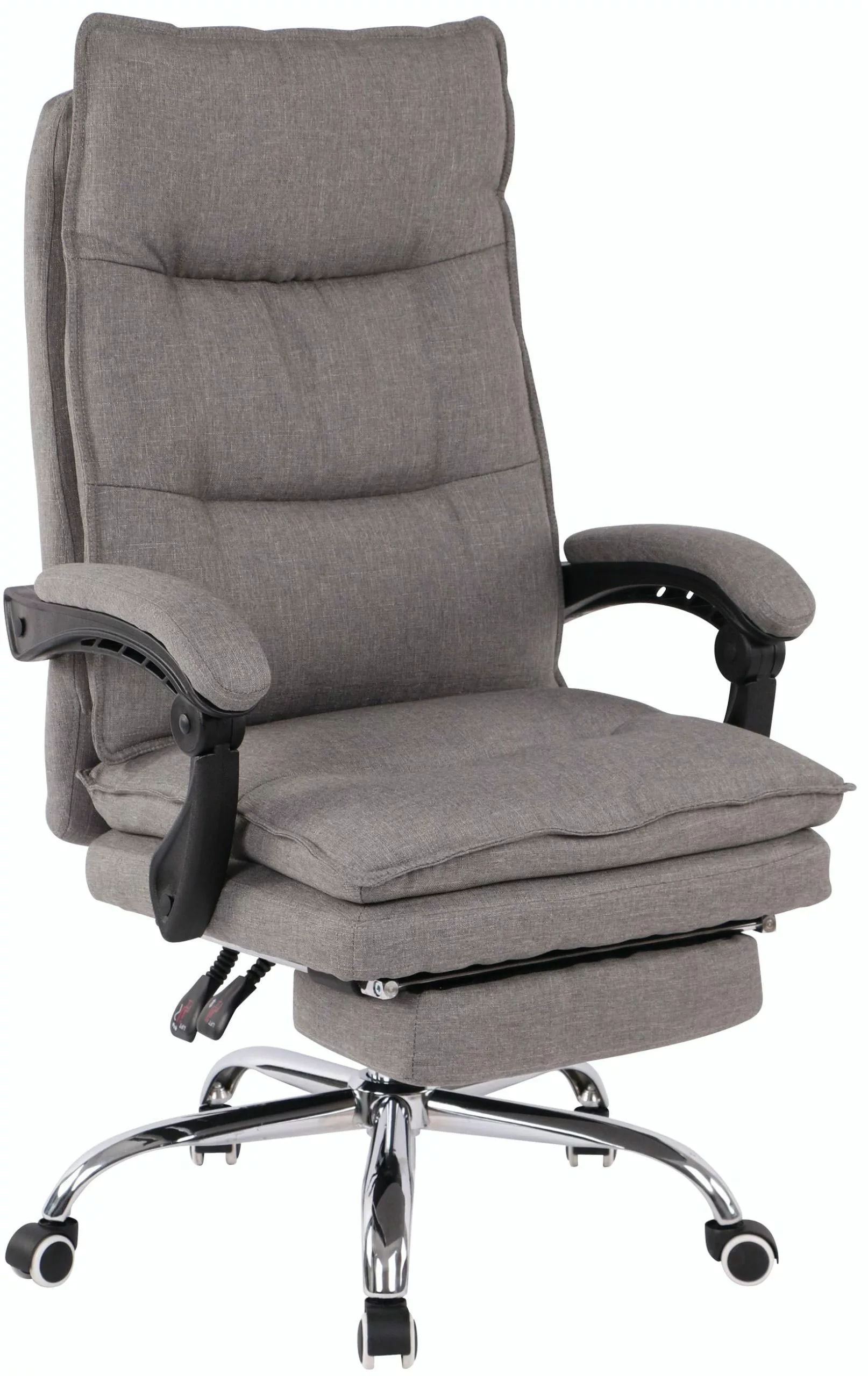 Komfort ist mit dem Bürostuhl Power im klassischen Look angesagt. Eine hochwertige Polsterung und ein pflegeleichter Stoffbezug sorgen für ein komfortables Sitzgefühl, welches auch bei längerem Verweilen bestehen bleibt. Die leicht verstellbare Fußstütze und Rückenlehne sorgen zusätzlich für eine angenehme Pause zwischendurch, bei der sich entspannt zurückgelehnt werden darf und die Beine hochgelegt werden können. Dank der stufenlos verstellbaren Sitzhöhe garantiert der Chefsessel zudem jederzeit ein ergonomisches Sitzen. Dabei steht er standsicher auf fünf Leichtlaufrollen und einem Gestell aus Metall in Chromoptik. Egal ob Hart- oder Teppichböden – man kann immer leicht und locker über den Boden rollen.