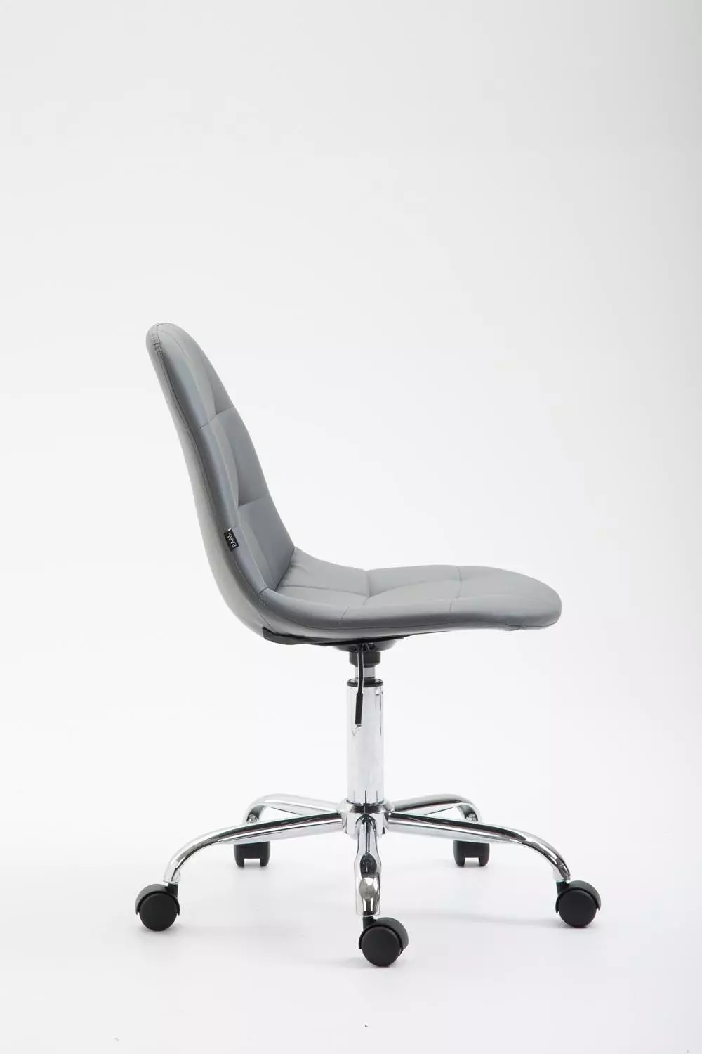Der Bürostuhl Reims besticht durch seine komfortable Polsterung und einen schlanken, rundlichen Look. Rechteckige Ziernähte und klare Farbvarianten machen den Bürostuhl zum optischen Highlight an jedem Arbeitsplatz. Der filigrane Sitz ist mit einem Kunstlederbezug überzogen und dank einer stufenlos verstellbaren Sitzhöhe ist das ergonomische Sitzen garantiert. Dabei steht er standsicher auf fünf Leichtlaufrollen und einem Gestell aus Metall in Chromoptik. Durch sein praktisches Design ist er auch für kleinere Räume geeignet und flexibel einsetzbar. Egal ob Hart- oder Teppichböden – man kann immer leicht und locker über den Boden rollen.