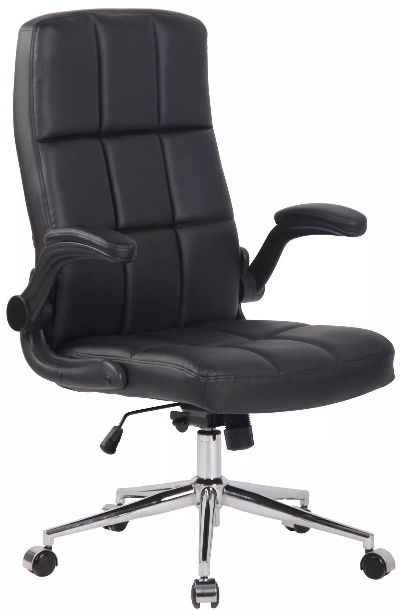 Dieser Bürostuhl überzeugt nicht nur mit seinem modernen Look, auch in Sachen Komfort kann ihm keiner etwas vormachen. Seine Polsterung mit den schönen Ziernähten und der pflegeleichte Bezug sorgen für ein angenehmes Sitzgefühl auch über mehrere Stunden. Zudem ist die Sitzhöhe stufenlos verstellbar und garantiert ein ergonomisches Sitzen. Des Weiteren ist der Schreibtischstuhl mit einem Wippmechanismus versehen, der für mehr Bewegungsfreiheit sorgt. Die Stabilität ist durch das Metallgestell in Chromoptik gewährleistet. Durch die fünf Leichtlaufrollen kann man leicht und locker über den Boden rollen – egal ob auf Hart- oder Teppichböden. Das elegante Chromgestell und die verstellbaren Armlehnen geben dem Ganzen noch das gewisse Extra und runden das Design ab.