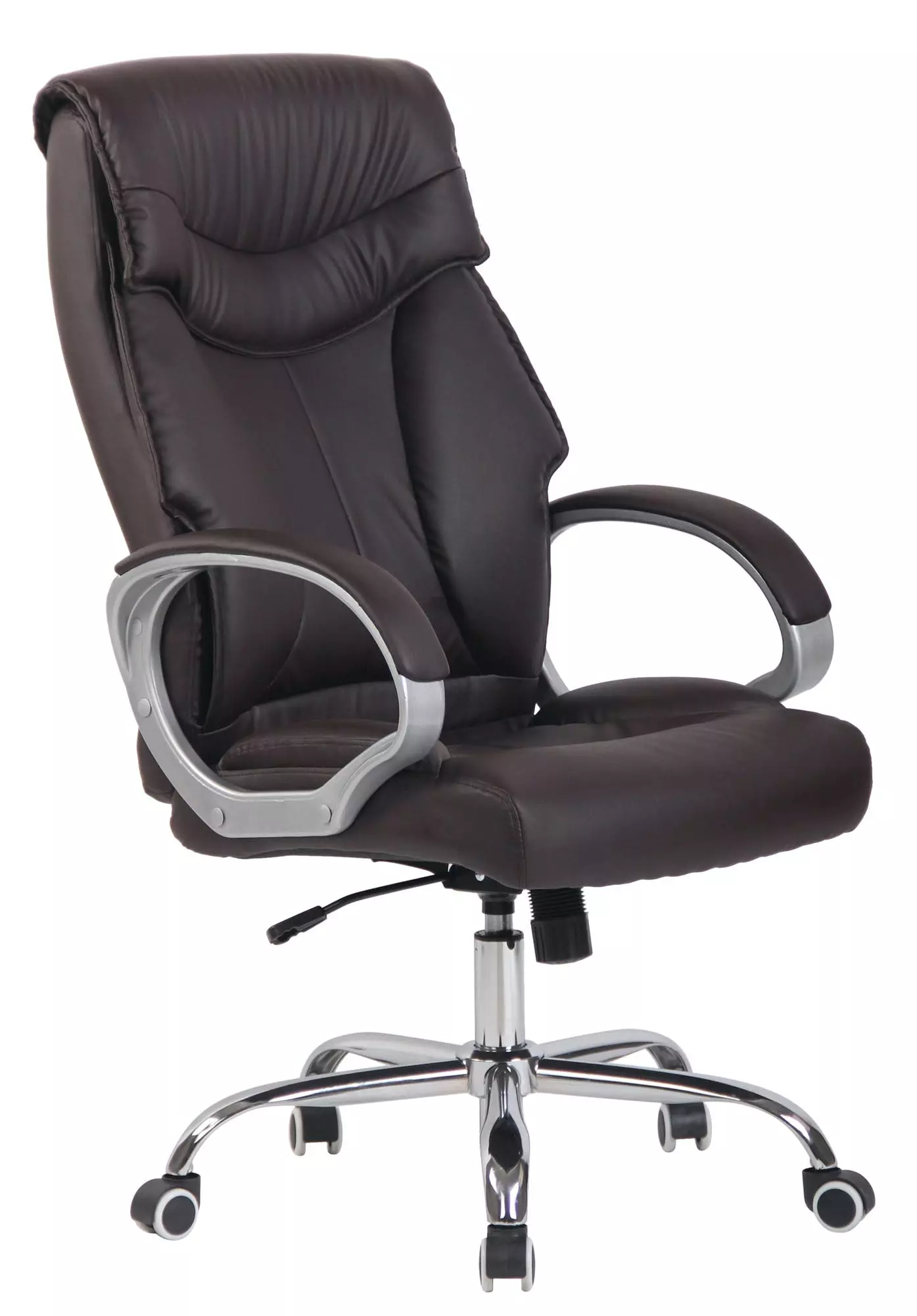 Der Chefsessel Torro ist ein extrem hochwertiger Bürostuhl mit einer sehr hochwertigen Polsterung und Kunstlederbezug. Kunstlederbezüge haben den Vorteil, dass sie elastisch sind und sich bei Entlastung wieder glatt ziehen. Dies sieht nicht nur schöner aus, sondern erhöht zusätzlich die Lebensdauer des Sitzbezuges. Kunstlederbezüge sind außerdem atmungsfähig, was grade bei hohen Temperaturen ein Vorteil ist. Das Gestell ist aus Metall in Chromoptik und sehr stabil. Die Sitzhöhe ist stufenlos verstellbar. Der Stuhl verfügt über einen eingebauten Wippmechanismus für mehr Bewegungsfreiheit. Der Bürostuhl verfügt über 5 sehr robuste Leichtlaufrollen. Egal ob Hart- oder Teppichböden – Sie werden immer leicht und locker über den Boden rollen können.