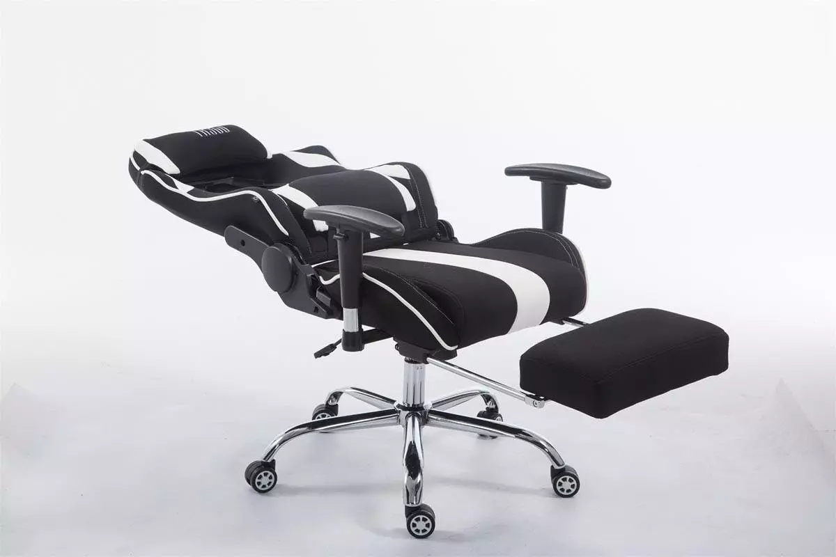 Der Bürostuhl Limit im ansprechenden sportlichen Design kombiniert Funktionalität und Komfort in bester Art und Weise. Die angenehm gepolsterte Sitzfläche mit Stoffbezug und die zwei abnehmbaren Nacken- und Rückenkissen sorgen nicht nur für eine gesunde Sitzhaltung, sondern auch für eine lang anhaltende Gemütlichkeit. Höhenverstellbare Armlehnen und individuelle Einstellmöglichkeiten garantieren ein komfortables Sitzgefühl, welches auch bei längerem Verweilen bestehen bleibt. Die leicht verstellbare Rückenlehne sorgt zusätzlich für eine angenehme Pause zwischendurch, da sogar eine waagerechte Position möglich ist. Dabei steht der Bürostuhl standsicher auf fünf Leichtlaufrollen und einem Gestell aus Metall in Chromoptik.