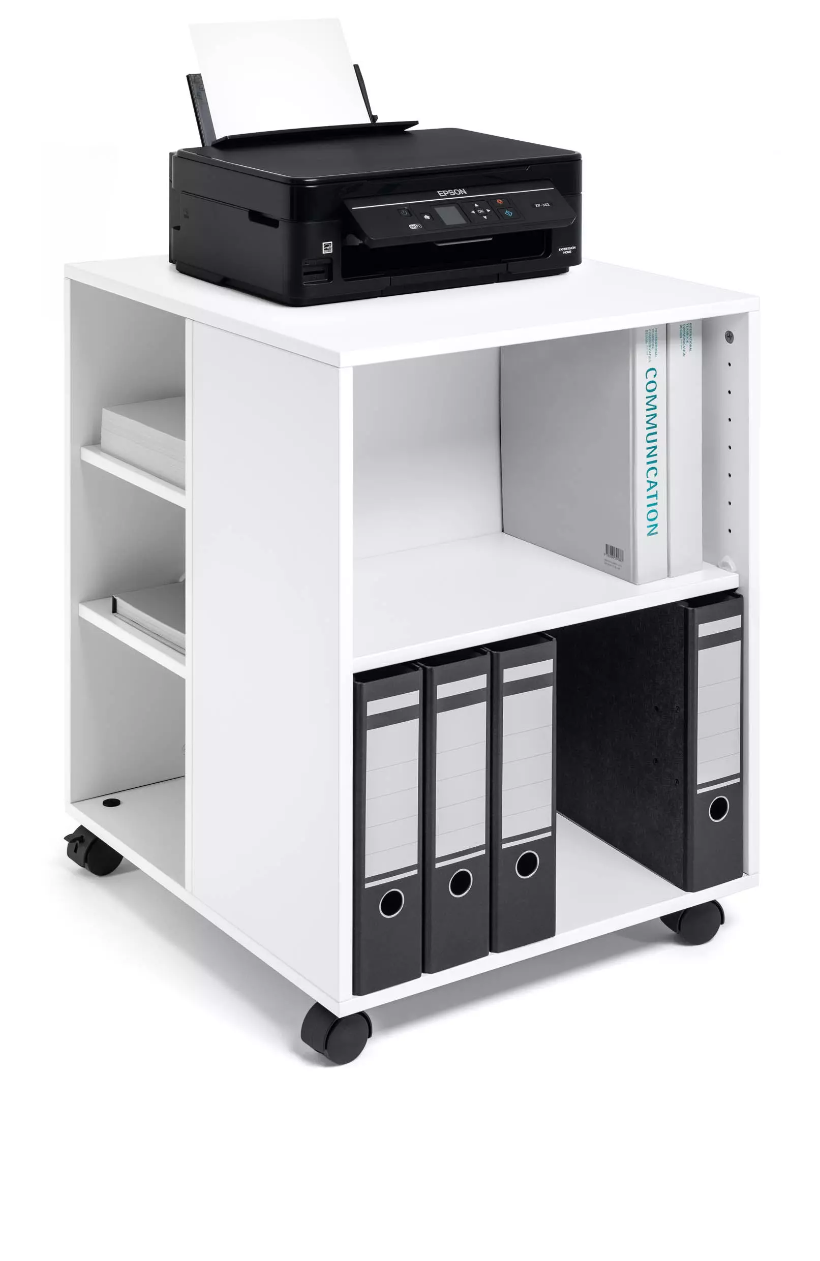 Durable 311302 Multifunktions-Wagen 74/59 offen (528 x 748 x 592 mm) weiß Bürowagen mit 6 Böden für viele Ablagemöglichkeiten 3-seitig offen für schnellen ZugriffBelastbar bis 60 kg (verteilte Last) 4 Doppellaufrollen, davon 2 feststellbar 16 mm starke Holzplatten Einlegeböden höheneinstellbar Maße Böden: B 500 x T 270 mm Moderne Büroumgebungen erfordern flexible Büromöbel für die Bereitstellung von Arbeitsmaterial und Bedienung von Geräten. Organisationswagen eignen sich für zahlreiche Anwendungsgebiete von Ablage bis Bewirtung. – Durable ist eines der führenden deutschen Markenunternehmen im Bereich Büroorganisations- und Präsentationsmittel.