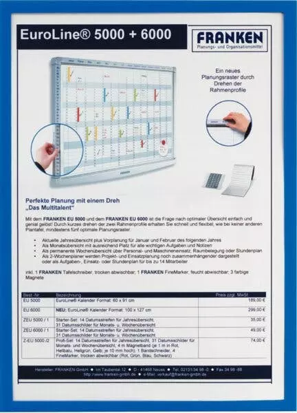 Franken Pinntafel, HxB 900x1200mm, Pinnbar, Tafel Filz, Blau, Rahmen Alu, Silber