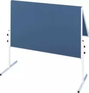 Moderationstafel, Höhe 1900 mm, Tafel Höhe x Breite 1500 x 1200 mm, Tafeloberfläche pinnbar, Tafel aus Filz in blau, beidseitig nutzbar, Rahmen aus Metall in weiß, Gestell aus Stahl in weiß.