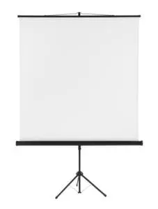 Stativleinwand, Format 1:1, Bildfläche Höhe x Breite 2000 x 2000 mm, Leinwand bezogen mit Gewebetuch, diffuses Licht (Typ D) mit Leuchtdichtefaktor 1,0 Gain, höhenverstellbares Stativ, Bedienung per manuell.