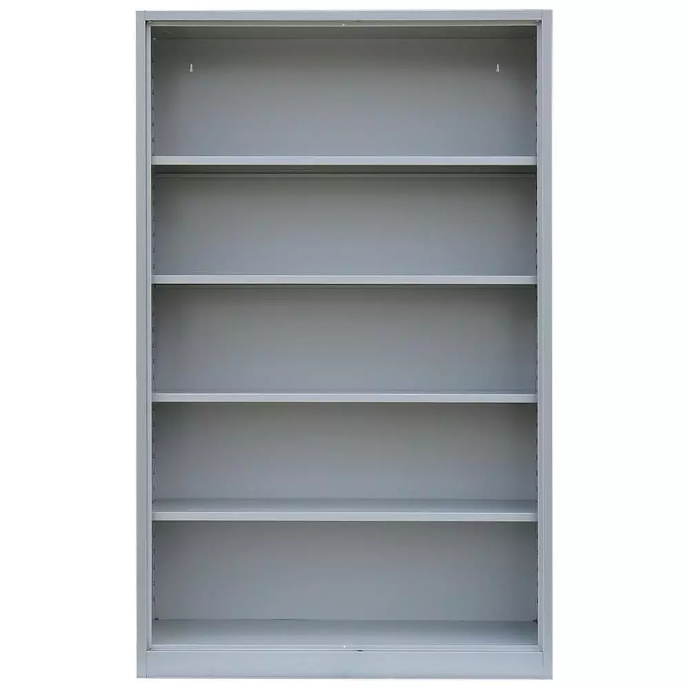 Aktenregal, Büroregal, Ordnerregal, Metallregal, günstig, mit 4 Einlegeböden (5 Ordnerhöhen). Universell einsetzbar zum übersichtlichen Sortieren, Aufbewahren und Organisieren von Ordnern und Aufbewahrungsboxen oder Büchern für Büros, Lagerräume, Archive, Keller, Containereinrichtungen und Containerbüros.Langlebige, pflegeleichte, verschweißte Stahlkonstruktion 4 herausnehmbare Fachböden, 5 Ordnerhöhen Individuelle, flexible Innen-Einteilung durch höhenverstellbare Einlegeböden (im 5 cm-Raster) Tragkraft der Einlegeböden bis zu 65 kg Korpus und Einlegeböden elektrostatisch, glatt pulverbeschichtet Qualität und Sicherheit Lieferung: Komplett verschweißt (keine Montage erforderlich) Farbe: RAL 7035 LichtgrauMaße in mm ca.: Höhe: 1950 mm, Breite: 1200 mm, Tiefe: 422 mm