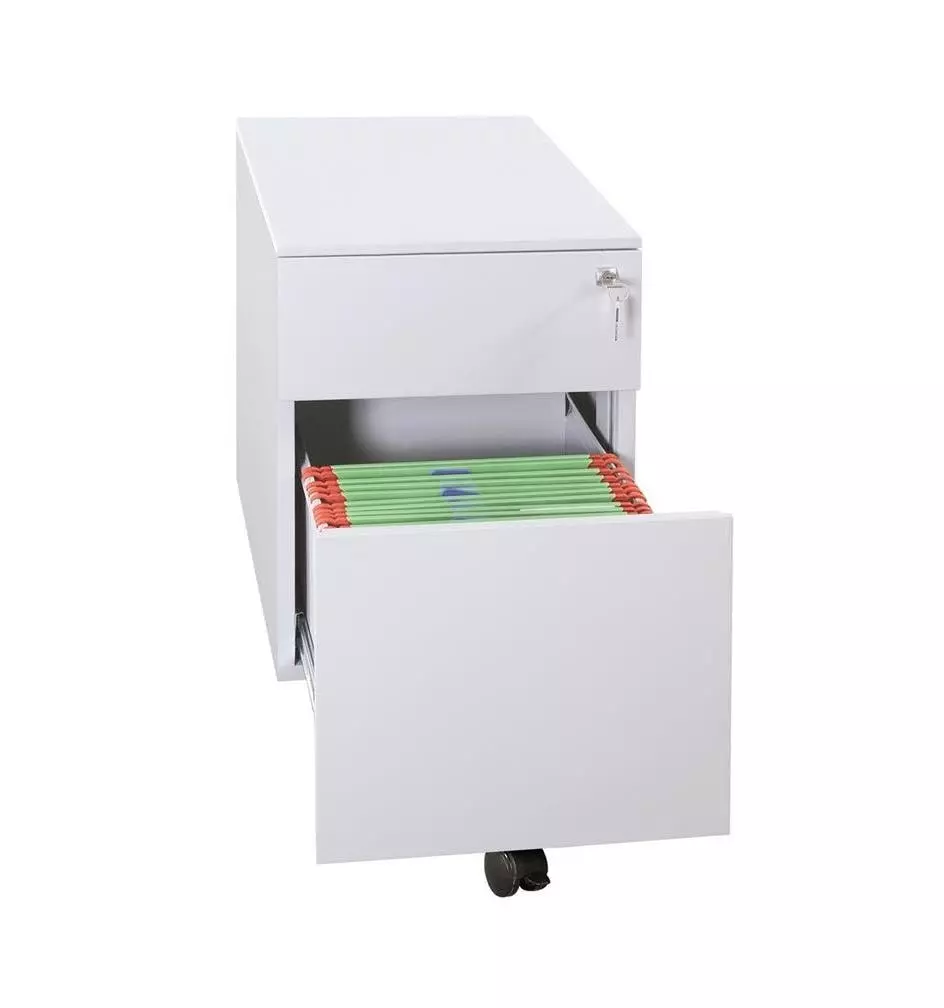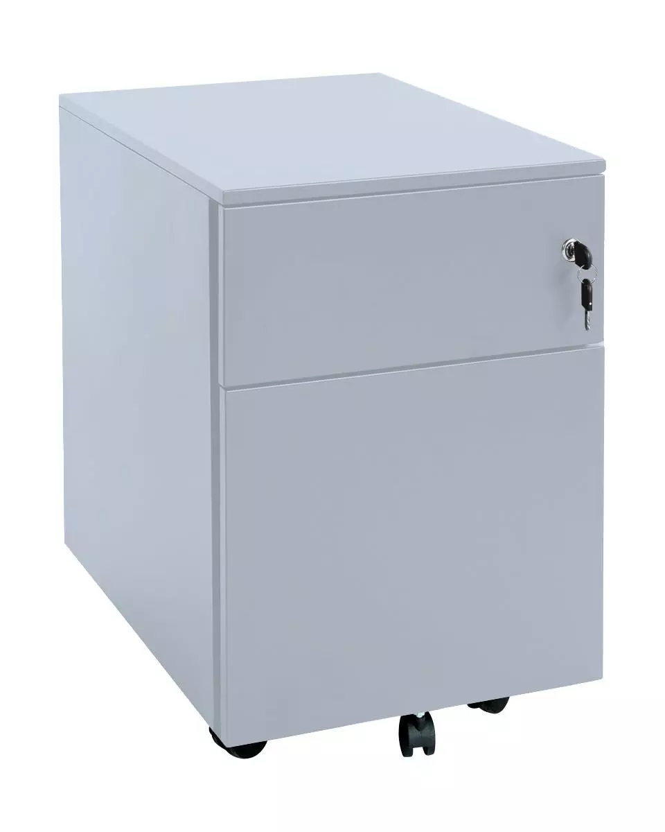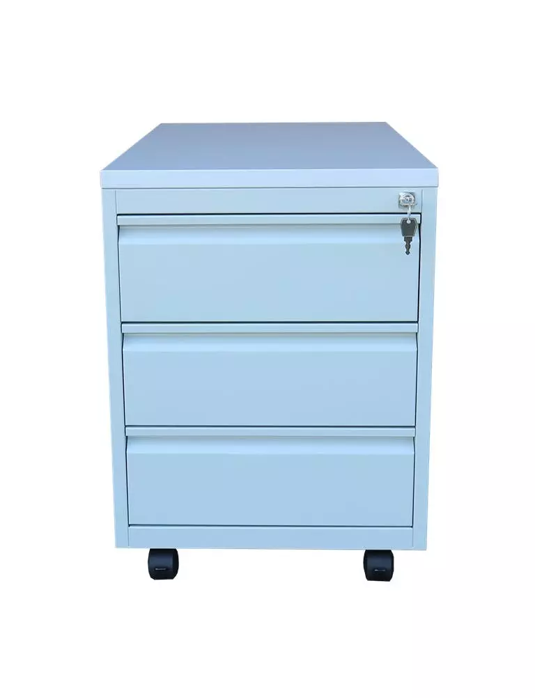 Stahl-Rollcontainer mit 3 Schubladen & Seitengriff separater Stifteauszug. Abschliessbar durch ein Zylinderschloss, inkl. 2 Schlüsseln. Schubladenführung in TeleskopschienenSchubladentiefe 530 mmGehäuse, Schubladen und Metallabdeckplatte sind pulverbeschichtet in RAL 7035 Lichtgrau. Maße: 620 x 400 x 590 mm (HxBxT)