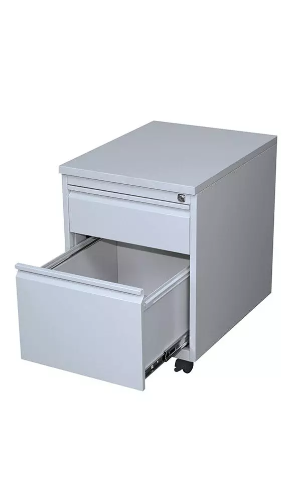Stahl-Rollcontainer mit 3 Schubladen mit durchgehender Frontgriffleisteseparater Stifteeinsatzverschließbar durch Zylinderschloss, inkl. 2 Schlüssel. Führung der Schubladen in Teleskop-SchienenSchubladentiefe 550 mmGehäuse, Schubaden und Stahl-Abdeckplatte pulverbeschichtet in RAL 7035 Lichtgrau4 Doppelrollen Maße: 610 x 460 x 590 mm (HxBxT)