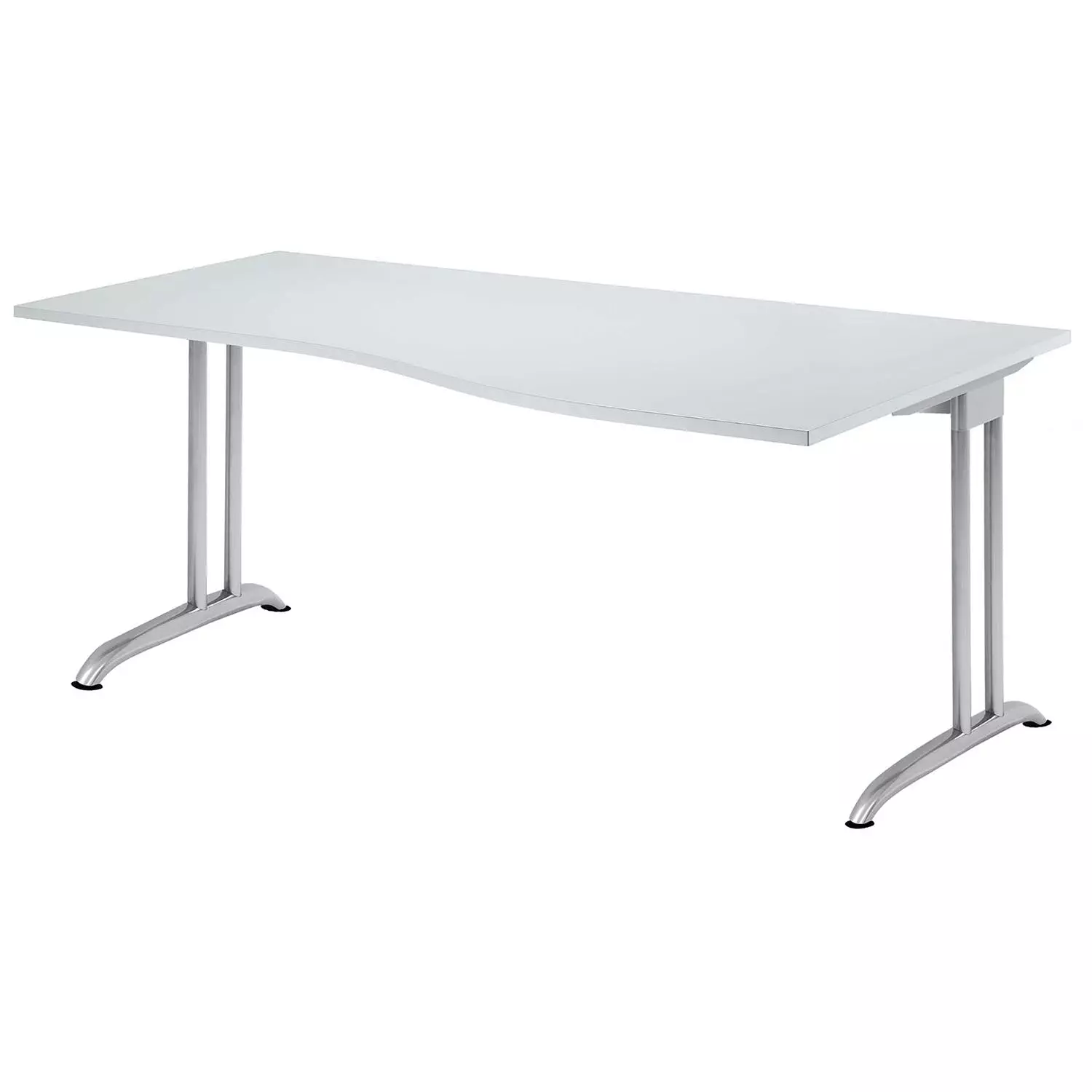 Freiform-Schreibtisch Berlin, mit formschön geschwungenem C-Fuß Design. Der melaminharzbeschichte Schreibtisch auf einem belastbaren Stahl-Rundrohr-Gestell überzeugt durch sein elegantes Design, das sich harmonisch in jede Umgebung und Raumgestaltung einfügt sowie durch seine besonders leicht zu reinigende Oberfläche.Langlebiges, pflegeleichtes, verschweißtes Stahl-Gestell, Stahrohr-Gestell aus Rundrohr, Klassisches, formschön geschwungenes C-Fuß Design, Winkelschreibtisch mit wendbarer Tischplatte, Tiefer Schenkel kann links oder rechts montiert werden, Melaminharzbeschichtete Tischplatte aus Holzspanwerkstoff nach DIN 68765, Tisch- und Arbeitshöhe 720 mm nach DIN-Norm , Gestell einbrennlackiert, Lieferung: Zerlegt verpackt im Karton.Farbe: Gestell: RAL 9006 Weißaluminium, Tischplatte: Ahorn-Dekor.Maße in mm ca.: Höhe: 720 mm, Breite: 1800 mm, Tiefe: 1000/800 mm.
