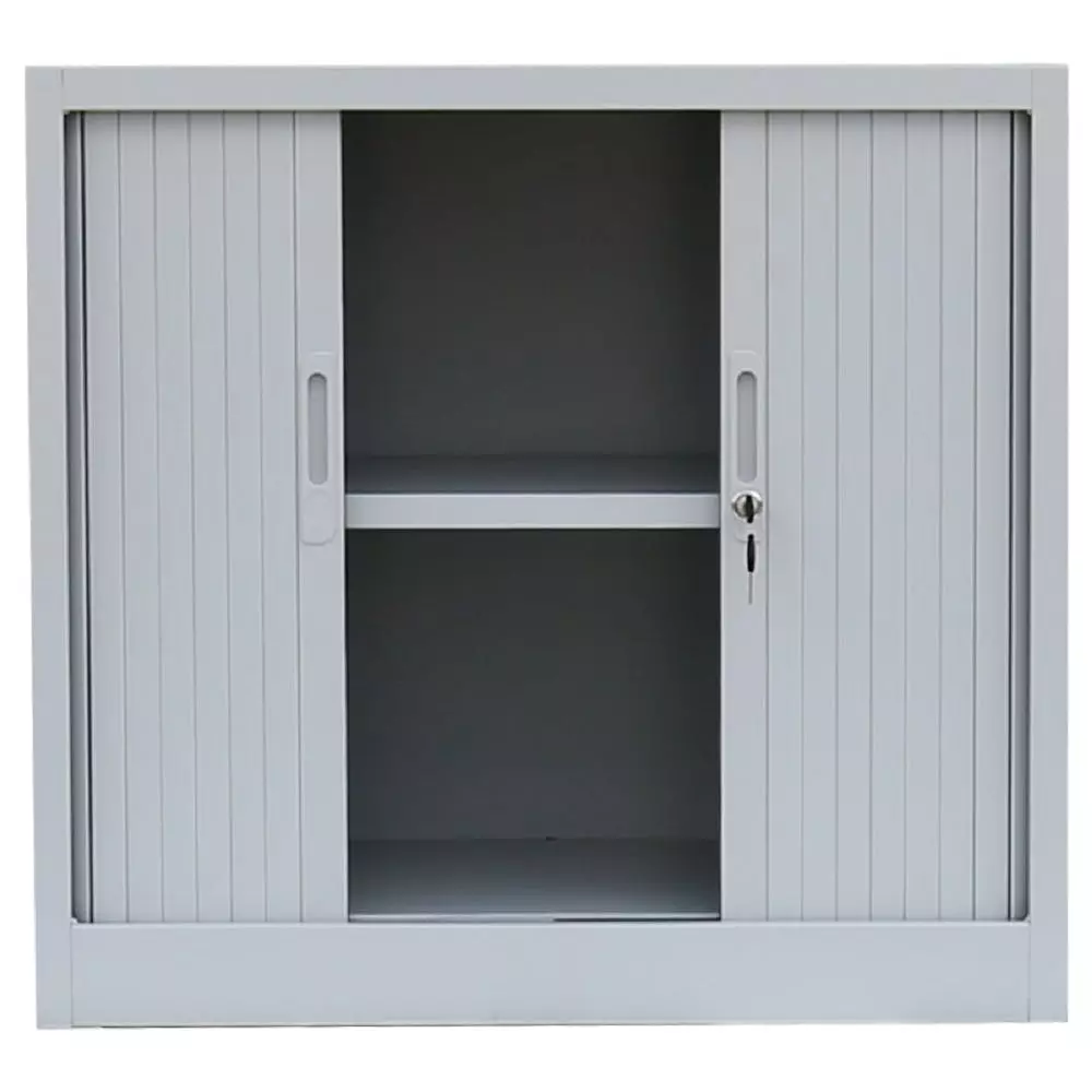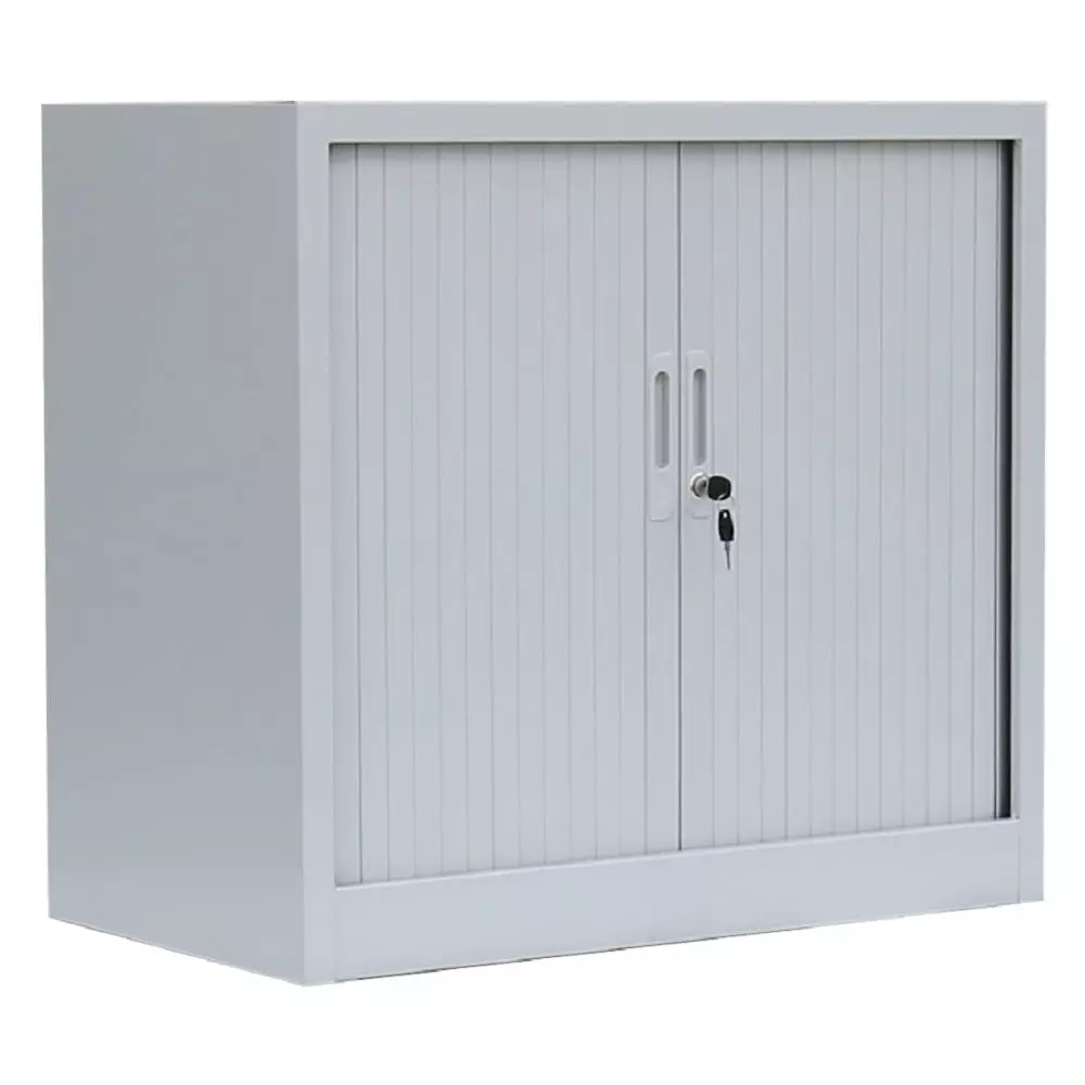 Stahl-Querrollladenschrank, 2 Einlegeböden, 2,5 OrdnerhöhenDie leichtlaufenden und geräuscharmen Kunststoff-Rollladentüren laufen komfortable und haben eine Griffmulde. Verschliessbar durch eine Hakenriegelschloss inkl. 2 Schlüsseln.Der Schrankkorpus ist pluverbeschichet in RAL 7035 Lichtgrau. Die Rollade ist ebenfalls Kunststoff lichtgrau. Unsere Querrollladenschränke sind GS-zertifiziert für eine hohe Qualität.