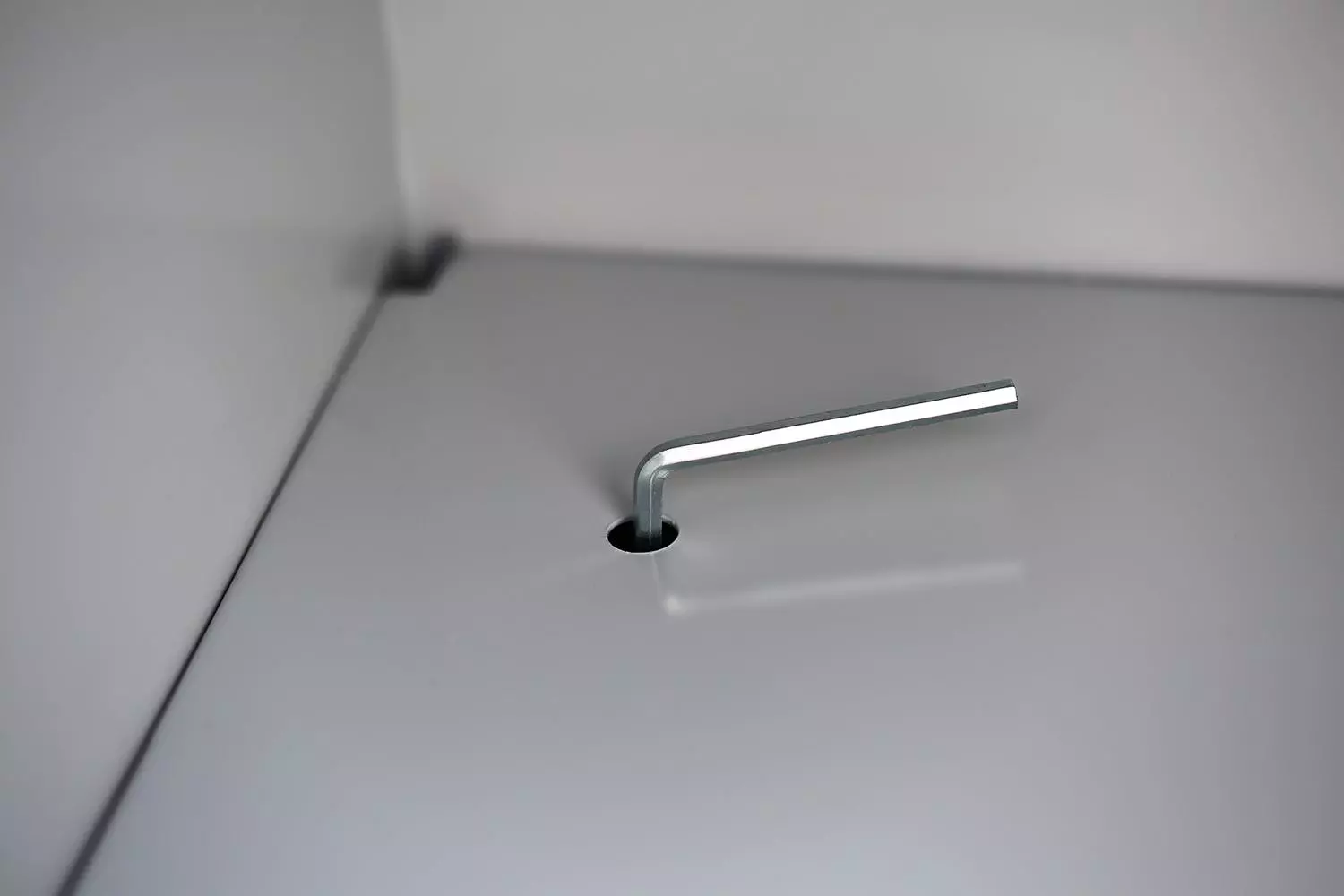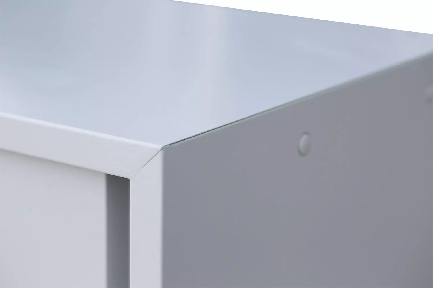 Hochwertiger Profi Stahl-Schiebetürenschrank/Sideboard 120 cm breit für Ihr Home Office oder im professionellen Büro-Einsatz. Langlebige, pflegeleichte, verschweißte Stahl-Konstruktion Optimal geeignet für enge Raumverhältnisse 1 Fachboden, 2 Ordnerhöhen Leichtläufige Schiebetüren in Schienenführung mit Kugellagerrollen und praktischen Griffmulden Serienmäßig mit geräuschdämpfenden Anschlagspuffern Fachböden im Raster höhenverstellbar Fachbodentragkraft bis 50 kg Fachböden serienmäßig in Korpusfarbe ausgeführt Bis 10 mm höhenverstellbare Drehfüße zum Niveauausgleich Dreh-Druckzylinderschloss inkl. 2 Schlüssel Korpus und Schubladen elektrostatisch, glatt pulverbeschichtet Qualität und Sicherheit Komplett verschweißt, keine Montage erforderlich Maße: 750 x 1200 x 450 mm (HxBxT) Farbe: Korpus in RAL 7035 Lichtgrau, Türen in RAL 7035 Lichtgrau