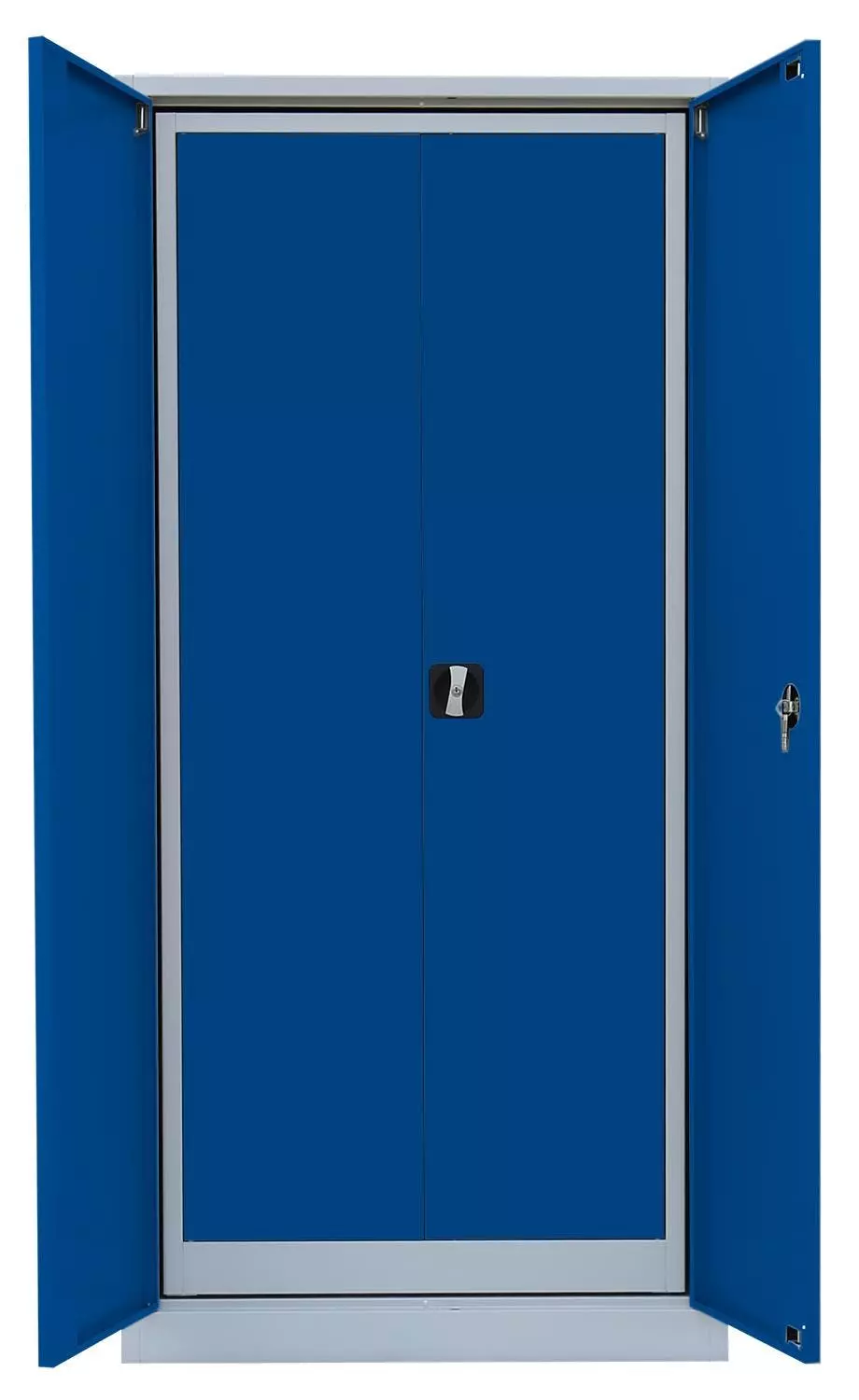 KOMFORT Stahl Besen, Putzmittel, Wäscheschrank, Spind mit 2 Türen mittig schließend. Im rechten Abteil befindet sich eine Gerätestange/ Kliederstange mit 3 Kunststoff-SchiebehakenIm linken Abteil finden Sie 3 Fachböden die bis zu 65kg belastet werden können.Abteilbreite 400 mm je Abteil in allerbester Qualität Abmessung: 1800 x 800 x 500 mm (Höhe x Breite x Tiefe) Stahl-Besen-Schrank, Putzmittel-Spind, Wäscheschrank mit 2 Türen mittig schließend2 Abteileauf Sockel (Platz für Eimer, Putzmittel, Handtücher, Kittel, Arbeitskleidung etc. Dieser Stahlschrank bietet eine vielseitige Nutzung)Farbe: LichtgrauKein Aufbau notwendig, fix und fertig montiert!!