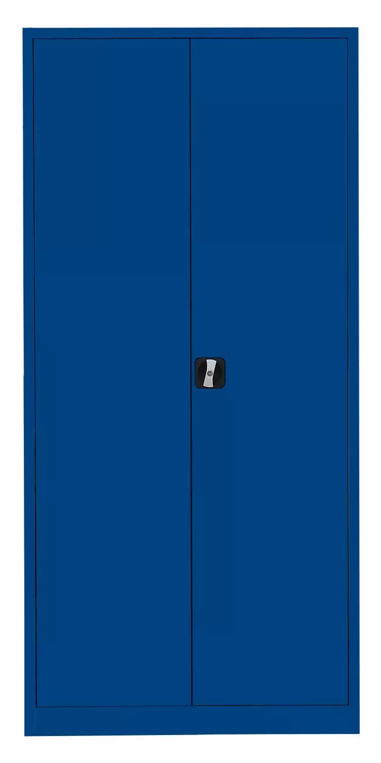 Aktenschrank, Büroschrank, Aktenschrank Metall, Ordnerschrank, Lagerschrank, Werkzeugschrank, mit 4 Einlegeböden (5 Ordnerhöhen). Universell einsetzbar zur Lagerung und Ablage von Aktenordnern und Dokumenten, zum sicheren Aufbewahren (abschließbar durch Schubstangen-Zylinderschloss) und Lagern von Werkzeug, Aufbewahrungsboxen, Verkaufsunterlagen, Katalogen, Papier und Schreibmaterial. Ideal geeignet für Büros, Logistik, Lager, Werkstätten sowie für den Privatgebrauch im Keller oder in der Garage.Langlebige, pflegeleichte, verschweißte Stahl-Konstruktion4 Fachböden, 5 Ordnerhöhen Schranktüren jeweils rechts und links angeschlagen, an gefederten Stiftscharnieren befestigt, mittig schließend Kastenverstärkung für eine erhöhte Türstabilität Flexible Nutzung als Aktenschrank oder Regal durch herausnehmbare Flügeltüren Geräuschdämpfende Kunststoff-Türanschlagspuffer serienmäßig Individuelle, flexible Innen-Einteilung durch höhenverstellbare Einlegeböden, im 5 cm-Raster Tragkraft der herausnehmbaren Einlegeböden bis zu 65 kg Einlegeböden serienmäßig in Korpusfarbe ausgeführt 2-Wege-Schubstangenzylinderschloss mit Drehgriff, inkl. 2 Schlüssel Korpus und Türen elektrostatisch, glatt pulverbeschichtet Qualität und Sicherheit Komplett verschweißt, keine Montage erforderlich, nur Fachböden müssen eingelegt werdenFarbe: Korpus: Enzianblau, Türen: Enzianblau