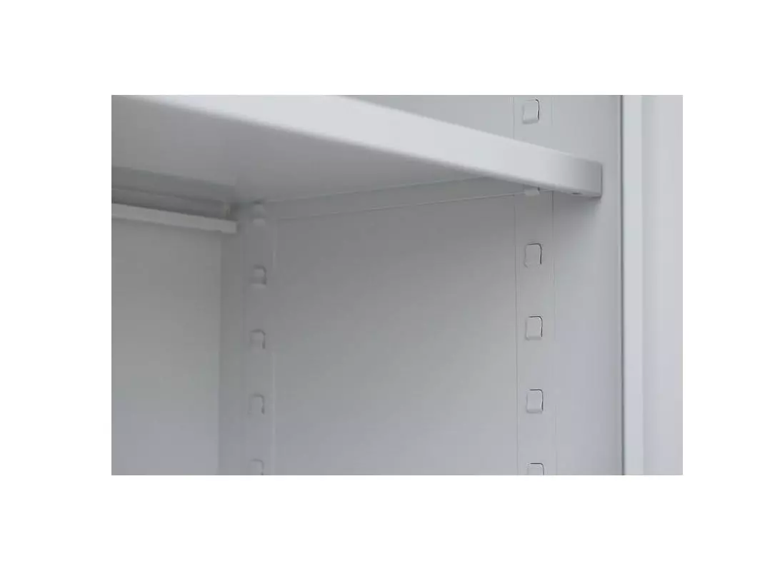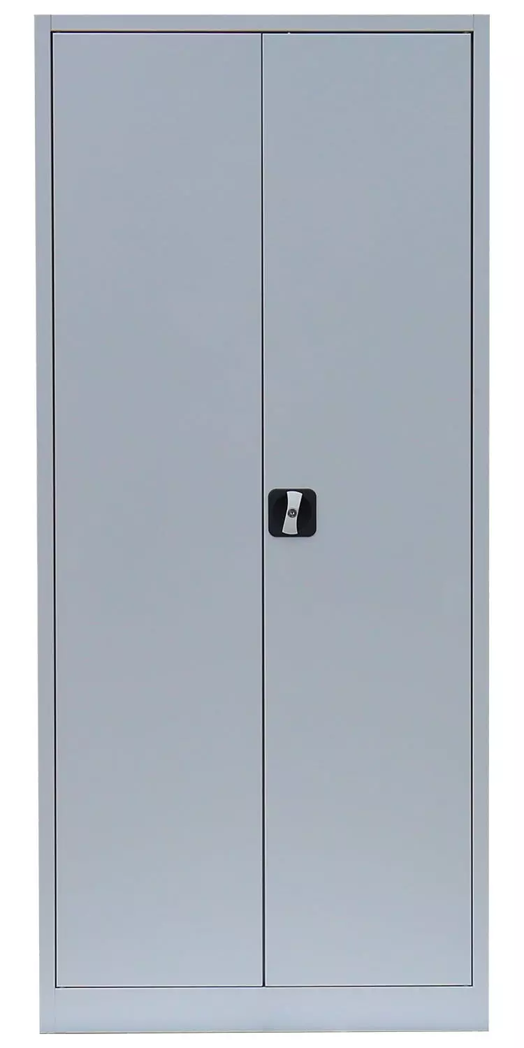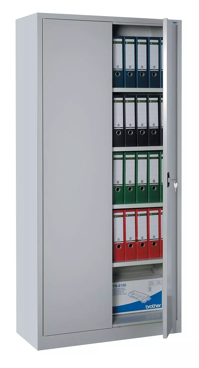 Aktenschrank, Büroschrank, Aktenschrank Metall, Ordnerschrank, Lagerschrank, Werkzeugschrank, mit 4 Einlegeböden (5 Ordnerhöhen). Universell einsetzbar zur Lagerung und Ablage von Aktenordnern und Dokumenten, zum sicheren Aufbewahren (abschließbar durch Schubstangen-Zylinderschloss) und Lagern von Werkzeug, Aufbewahrungsboxen, Verkaufsunterlagen, Katalogen, Papier und Schreibmaterial. Ideal geeignet für Büros, Logistik, Lager, Werkstätten sowie für den Privatgebrauch im Keller oder in der Garage. Langlebige, pflegeleichte, verschweißte Stahl-Konstruktion 4 Fachböden, 4,5 Ordnerhöhen Schranktüren jeweils rechts und links angeschlagen, an gefederten Stiftscharnieren befestigt, mittig schließend Kastenverstärkung für eine erhöhte Türstabilität Flexible Nutzung als Aktenschrank oder Regal durch herausnehmbare Flügeltüren Geräuschdämpfende Kunststoff-Türanschlagspuffer serienmäßig Individuelle, flexible Innen-Einteilung durch höhenverstellbare Einlegeböden, im 5 cm-Raster Tragkraft der herausnehmbaren Einlegeböden bis zu 65 kg Einlegeböden serienmäßig in Korpusfarbe ausgeführt 2-Wege-Schubstangenzylinderschloss mit Drehgriff, inkl. 2 Schlüssel Korpus und Türen elektrostatisch, glatt pulverbeschichtet Qualität und Sicherheit Komplett verschweißt, keine Montage erforderlich, nur Fachböden müssen eingelegt werdenFarbe:Korpus: LichtgrauTüren: Lichtgrau