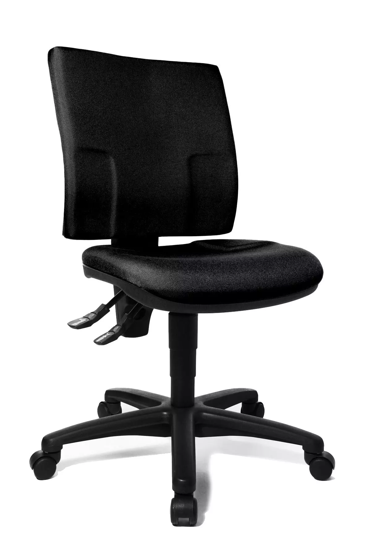 Bequemer Bandscheiben-Drehstuhl der Marke Topstar eignet sich sowohl für den Home-Office-Bereich, als auch für den professionellen Büroarbeitsplatz. Dieser erstklassig verarbeitete Büro-Drehstuhl mit ergonomisch geformtem Spezial-Bandscheibensitz aus komfortablem Formschaum und hoher, höhenverstellbarer Rückenlehne. Die Sitzhöhenverstellung mit der Sicherheitsgasfeder lässt sich stufenlos verstellen. Die Sicherheits-Doppellaufrollen sorgen für ein leichtgängiges Rollen des Drehstuhls. Sitzart: Spezial-Bandscheibensitz zur optimalen Abstützung im Beckenbereich, Sitztechnik: Permanentkontakt, stufenlos arretierbar, Sitzhöhenverstellung: ja/stufenlos., Rückenlehne: Ergonomisch geformt mit Wirbelsäulenausformung, stufenlos höhenverstellbar. Mit lastabhängig gebremsten Sicherheits-Doppelrollen für Teppichböden. Maße: Sitzgröße (BxT): ca. 46 x 45 cm Sitzhöhe: 42 – 55 cm, Fußkreuz: Formschönes und stabiles Fußkreuz aus schwarzem Polyamid, getestet bis 110 Kilogramm. Material: Polyamid, Polyester, Polypropylen, Farbe: Schwarzer Stoffbezug (Polyester), schwarzes Fußkreuz Vormontiert (mit montierter Trägerplatte), leichte Montage.