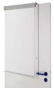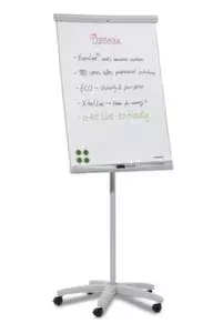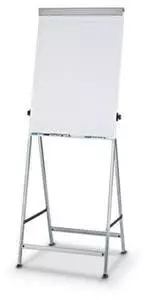 Flipchart, Höhe 1250 – 1950 mm, Tafel Höhe x Breite 1000 x 700 mm, Tafel aus Stahl in weiß, in der niedrigsten Höhe auch im Sitzen nutzbar, Ablageleiste, Gestell aus Aluminium.