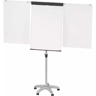 MAUL Flipchart MAULstandard 6372682 66x97cm Sternfuß 2 Papierhalter. Praktisch: Zwei Papierhalter, seitlich ausklappbar und magnethaftend, aus stabilem Stahl, z. B. für beschriebene Flipchartblätter. Mobil und leicht: Rollen sind feststellbar aus bruchsicherem Kunststoff für leichtes Bewegen ohne Kraftaufwand. Blockhalter, horizontal einzeln verschiebbar für alle handelsüblichen Blockformate. Abdeckklappe mit Griffmulde aus bruchsicherem Kunststoff. Ablageschale über die gesamte Breite aus bruchsicherem Kunststoff für Flipchartzubehör, Marker etc. Umweltschonende und sichere Verpackung, recycelbar.