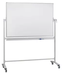 Mobile Drehtafel, Höhe x Breite 1950 x 2350 mm, Tafel Höhe x Breite 1200 x 2200 mm, Tafeloberfläche magnethaftend, beschriftbar und trocken abwischbar, Tafel aus Stahl in weiß, Tafelfläche um 360° drehbar und stufenlos arretierbar, Ablageschale, Rahmen aus Aluminium in silber, Gestell aus Stahl in grau.
