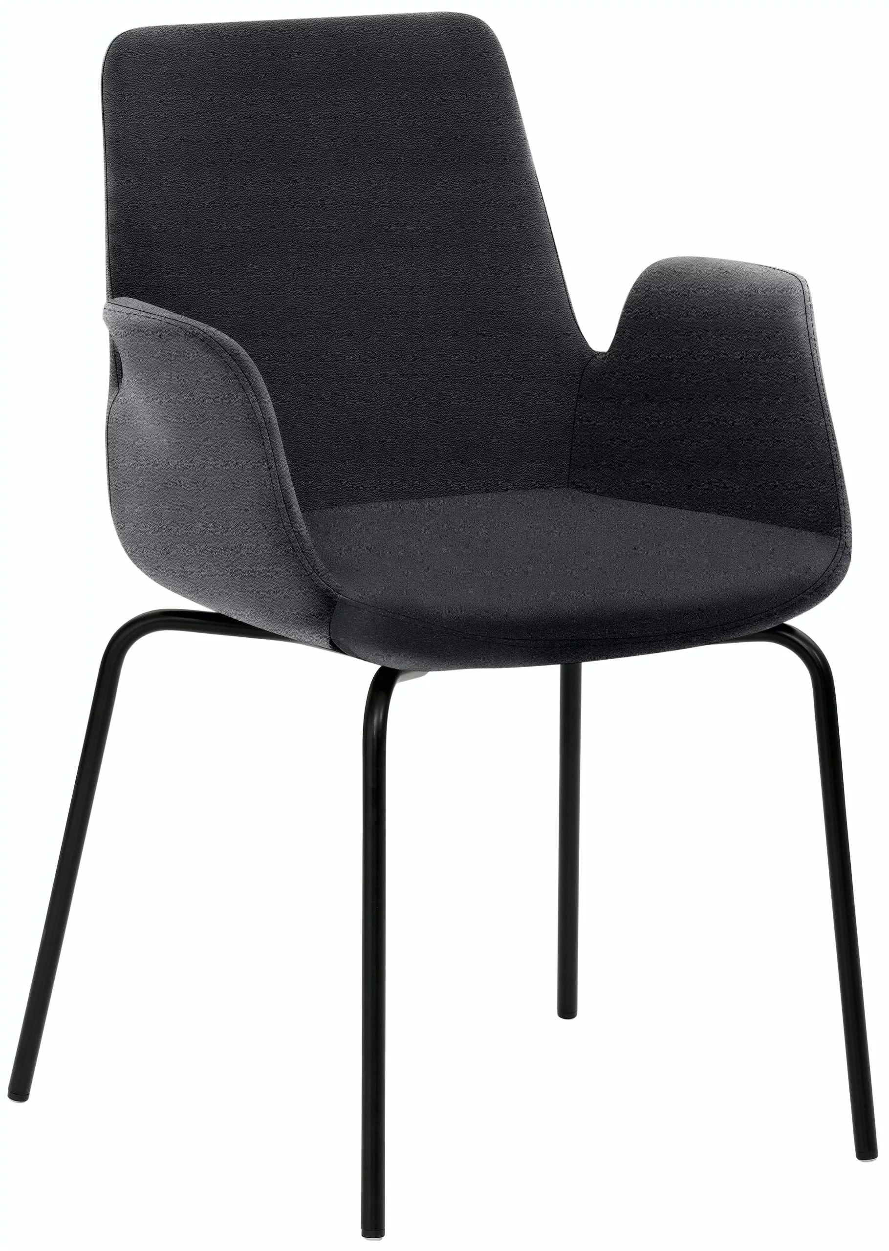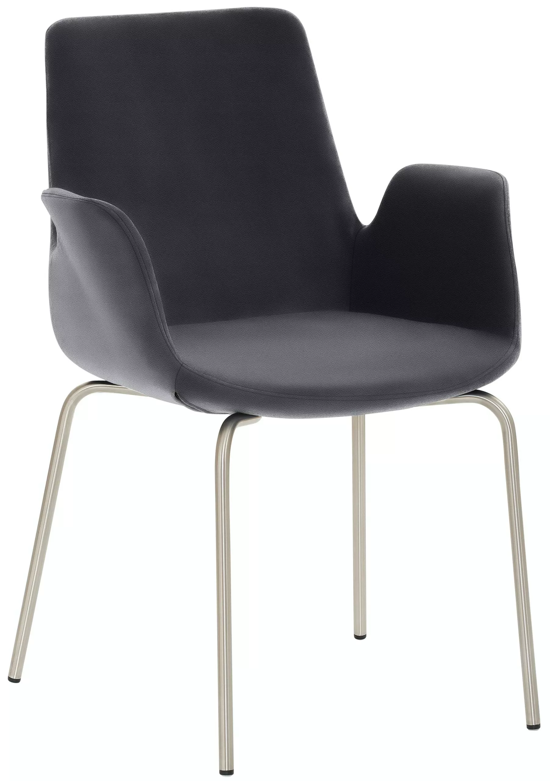 Freischwinger-Gestell, Chrom gebürstet Edelstahllook, mit integrierten Armlehnen, rundum gepolstert, Sitzhöhe 49 cm.