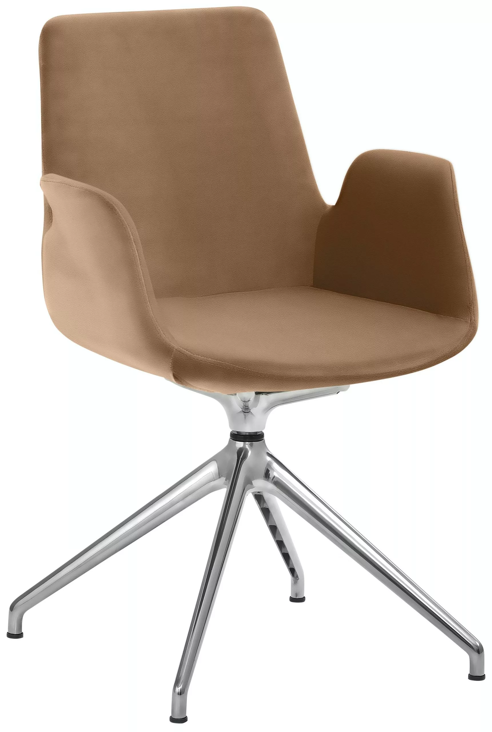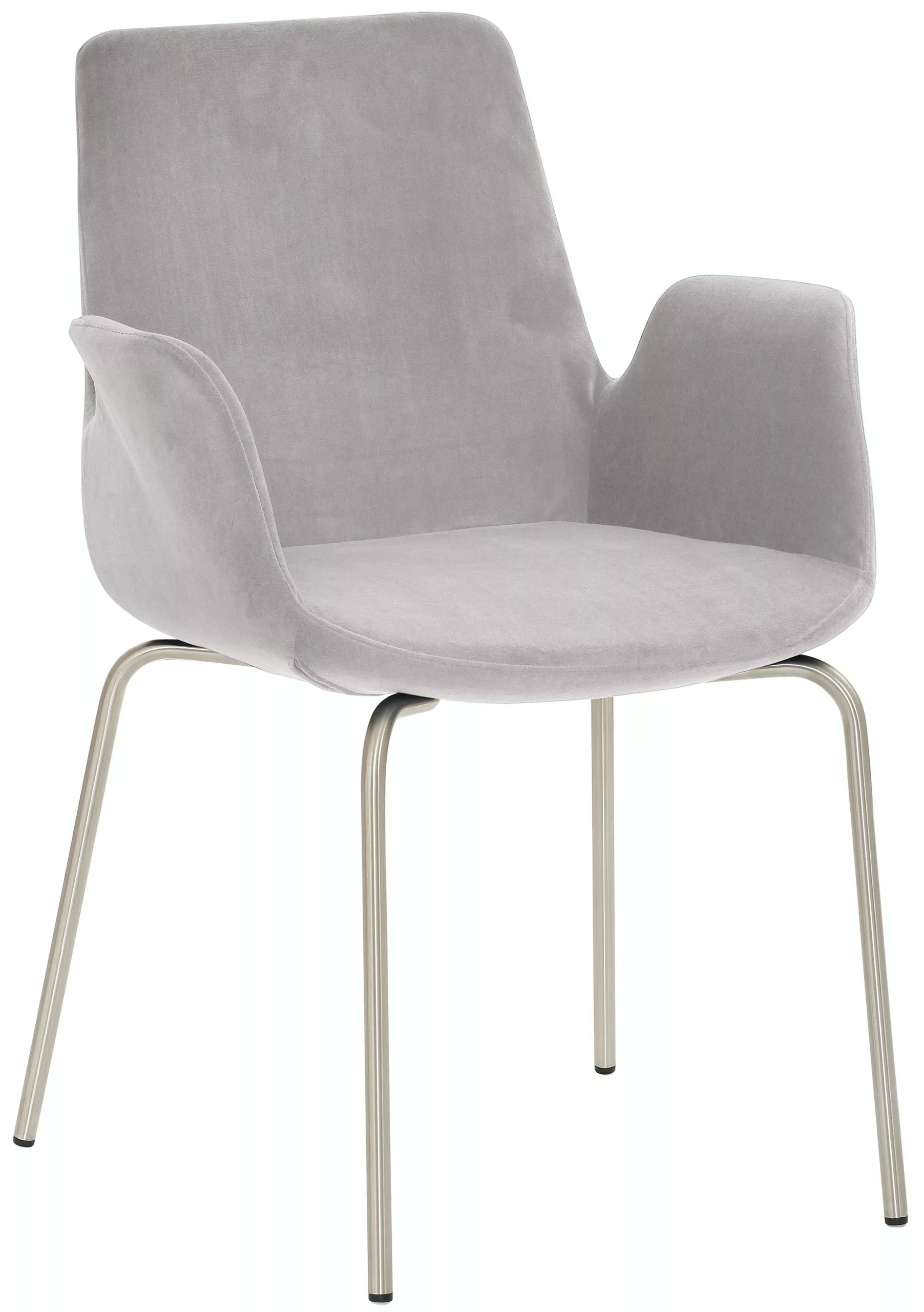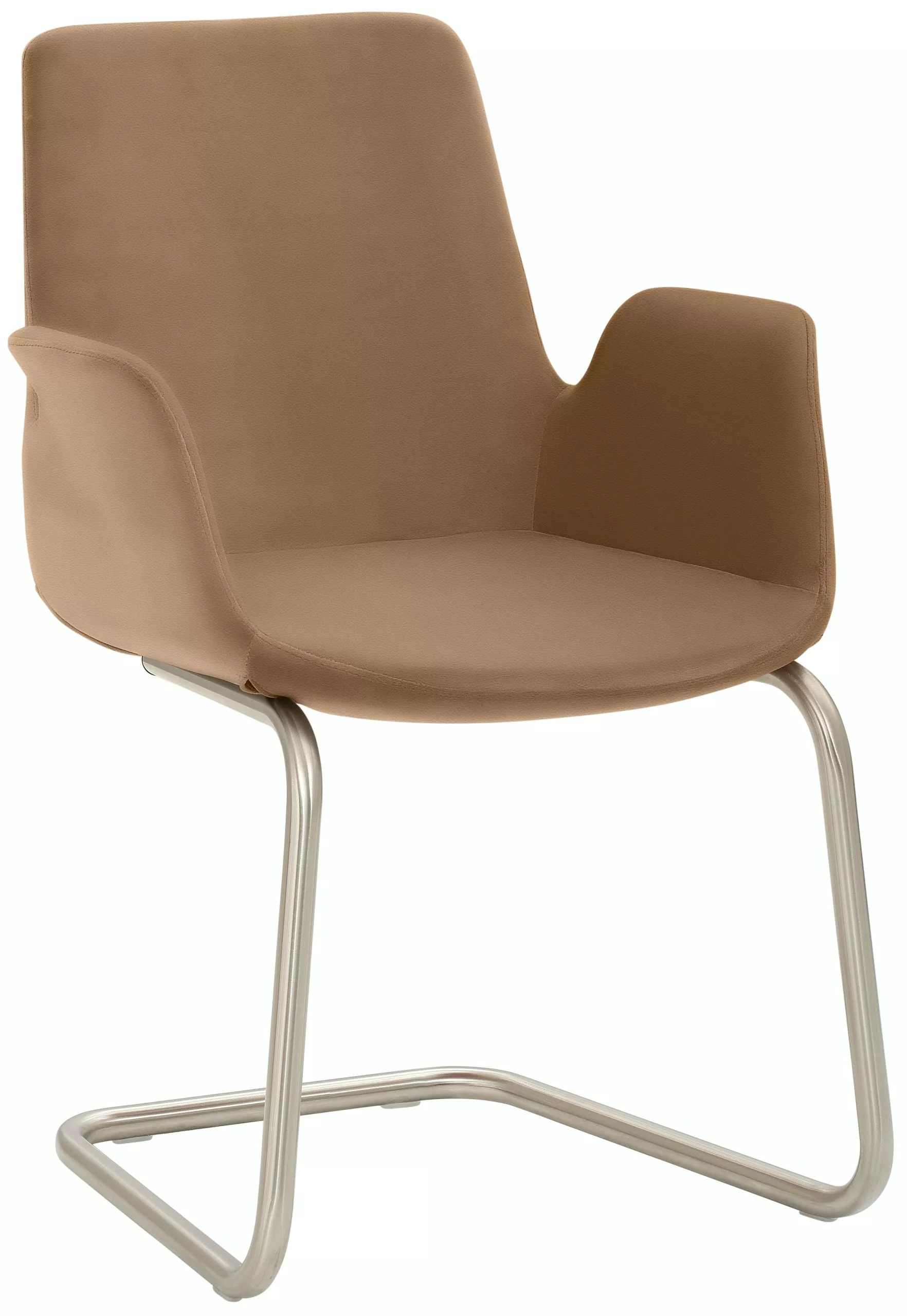 Freischwinger-Gestell, Chrom gebürstet Edelstahllook, mit integrierten Armlehnen, rundum gepolstert, Sitzhöhe 49 cm.