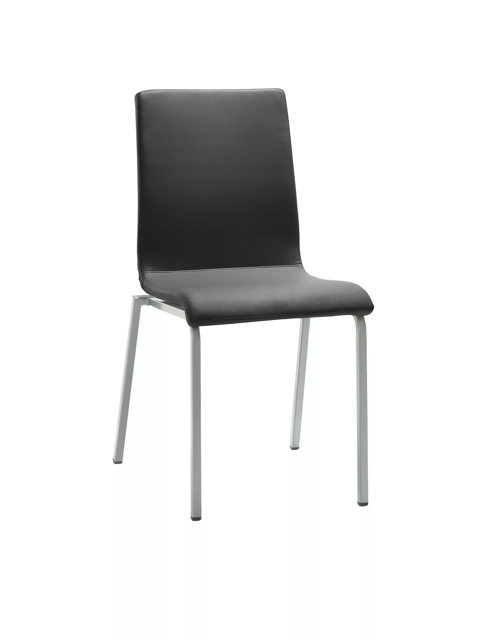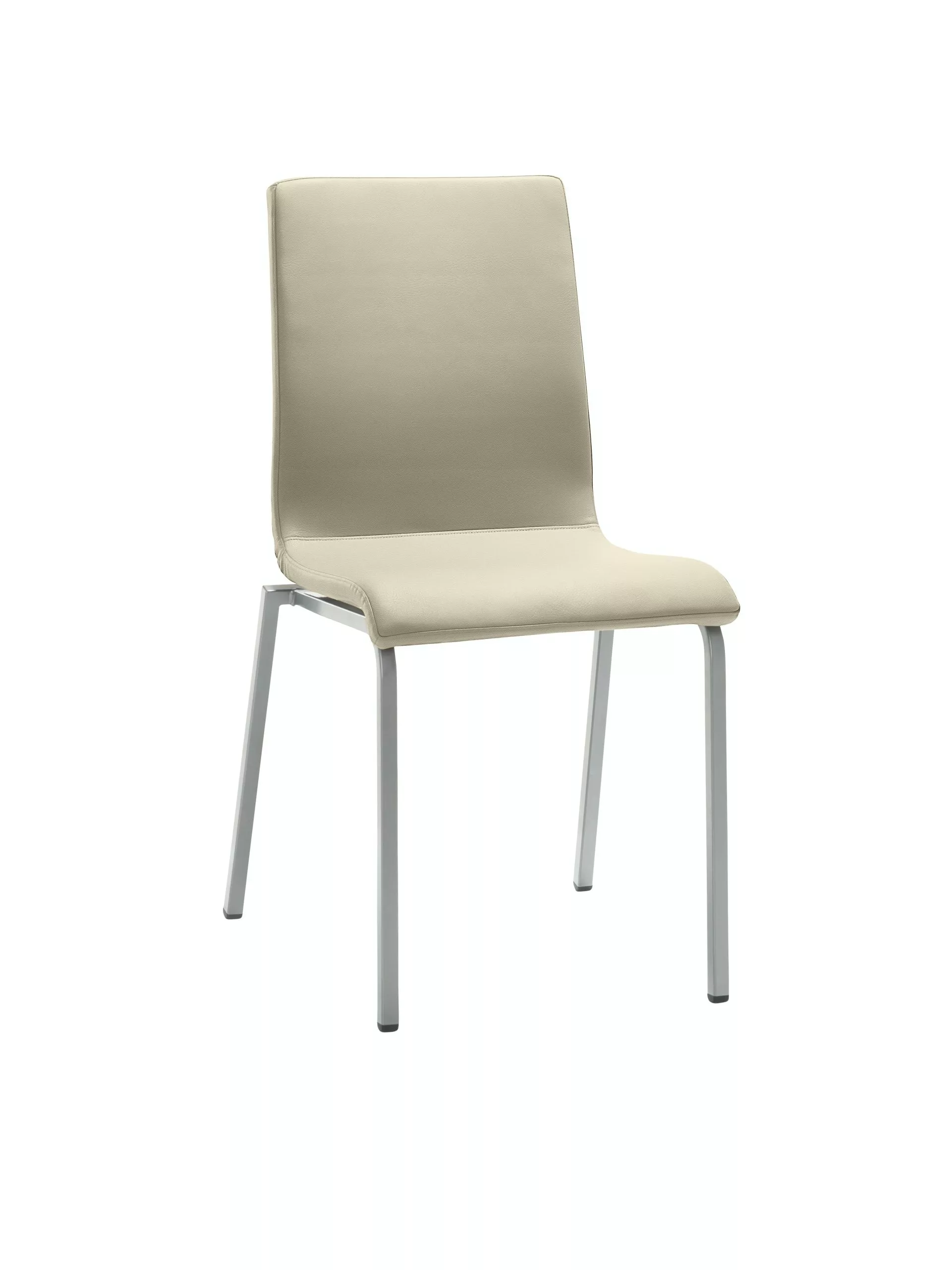 Gestell perlsilber, Rechteckrohr, durchgehende Sitz-/Rückenformschale gepolstert, nicht stapelbar, Sitzhöhe 48 cm.