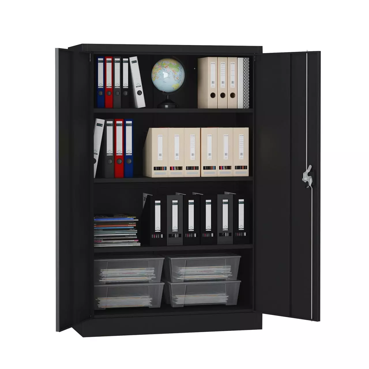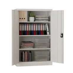 Auf der Suche nach einem Metallschrank, der Ihnen absolute Flexibilität verschafft und noch dazu einen guten Eindruck in Ihrem Büro macht? Dann entscheiden Sie sich für unseren hochwertigen Aktenschrank mit Flügeltüren und individuell höhenverstellbaren Einlegeböden. Sie bestimmen die Fachhöhe ganz einfach selbst und schaffen sich so ausreichend Platz für alles, was Ihnen im Büro wichtig ist. Ob Aktenordner oder sonstiges Büromaterial, alles was Sie sicher aufbewahren möchten, wird seinen festen Platz im neuen Aktenschrank finden. Durch die individuell einsetzbaren Einlegeböden, wird Sie eine neue Lieferung an Büromaterial so schnell nicht mehr ins Schwitzen bringen. Unser Aktenschrank ist so flexibel einsetzbar, dass Ihnen in seinem Einsatz keine Grenzen gesetzt werden. Setzen Sie unseren Aktenschrank doch einfach als Universalschrank zum Beispiel in der Werkstatt, dem Hobbyraum, dem Keller, dem Dachboden, der Garage oder dem Arbeitszimmer und Lager ein. Unser hochwertiger Stahlschrank ist überall für Sie da und nicht nur in Ihrem Büro ein hilfreicher Helfer.