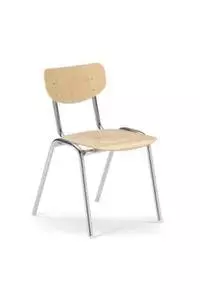 Besucherstuhl, 4-Fußgestell aus Rundrohr-Stahl mit Beschichtung in RAL9005 Tiefschwarz, ohne Armlehnen, geteilte Sitzschale aus Holz in Buche, ohne Polster.