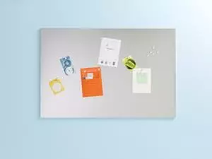 Edelstahl-Tafel, Höhe x Breite 470 x 470 mm, Tafeloberfläche gebürstet und magnethaftend, Lieferumfang inklusive Montagematerial.