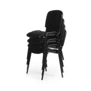 Konferenzstuhl, 4-Fußgestell aus Rundrohr-Stahl verchromt, ohne Armlehnen, Sitz mit Komfortpolster, Sitzbezug aus Stoff (100% Polyester) in schwarz, Rückenbezug aus Stoff (100% Polyester) in schwarz, stapelbar.