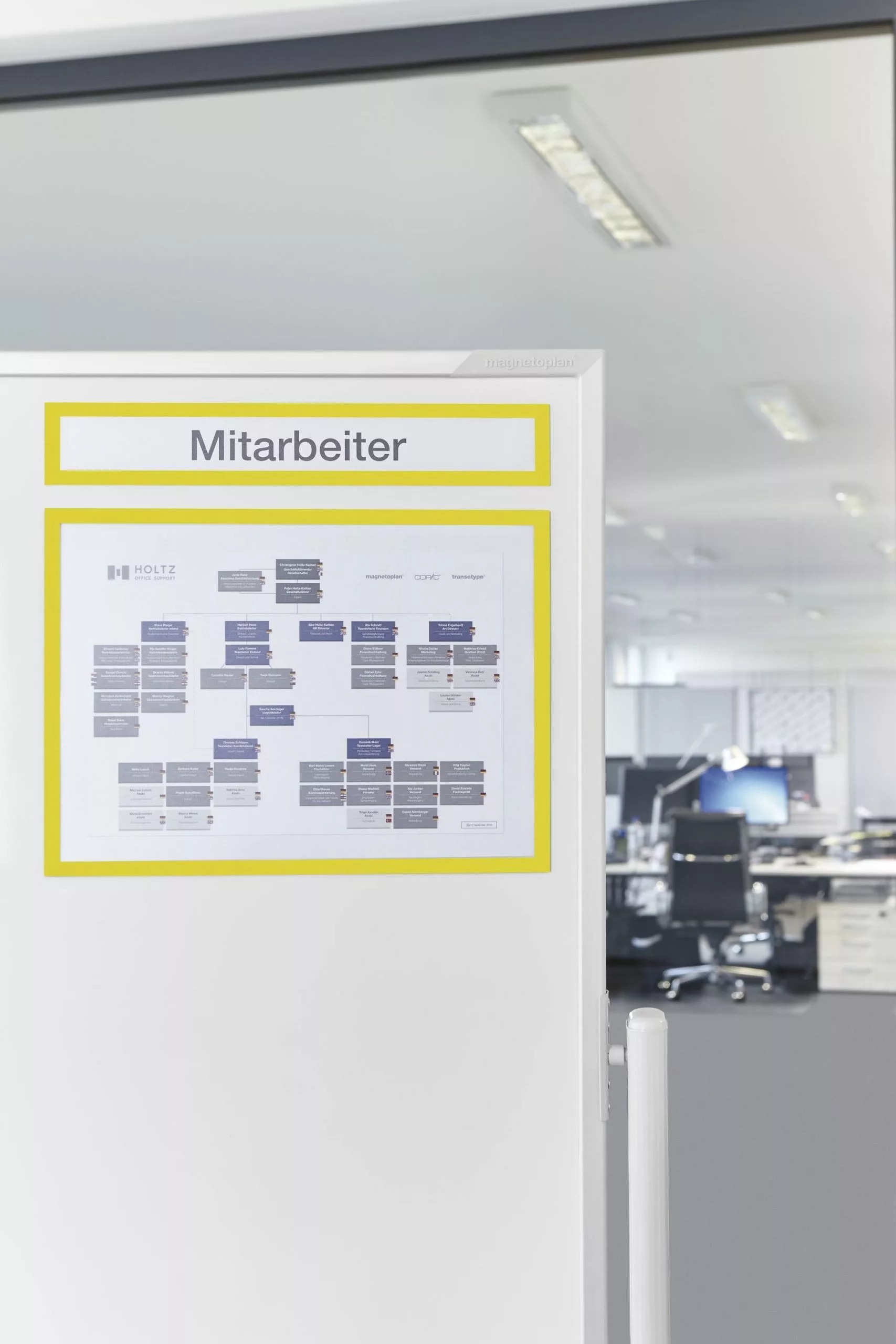 Farbiger Magnetrahmen zum Aushängen betrieblicher Informationen: Für Büro, Lager + Fertigung, ideal auch für TQM-Infotafeln Magnethaftend auf allen eisenhaltigen Oberflächen wie Whiteboards, Maschinen, Metallschränken und -türen Schützt Dokumente + verleiht ihnen den angemessenen Rahmen Hoch + quer einsetzbar Dokumentenwechsel schnell + einfach möglich: Eine Ecke anheben – Dokument wechseln – Ecke loslassen – fertig! VE = 5 Stück.