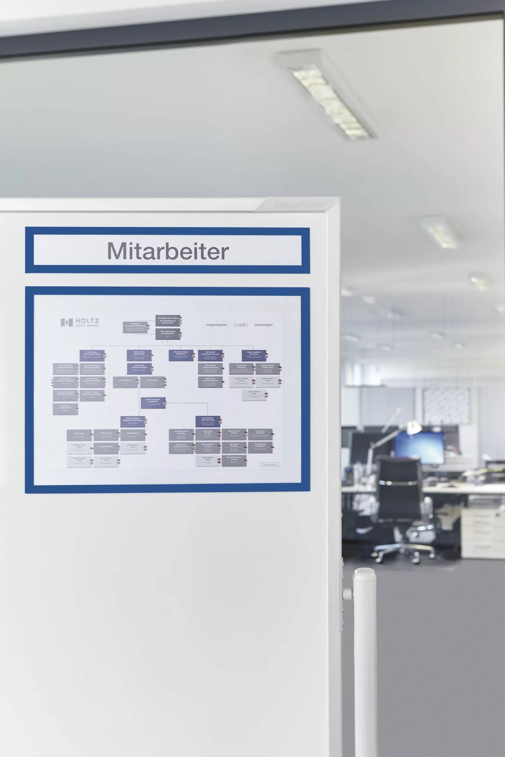 Farbiger Magnetrahmen zum Aushängen betrieblicher Informationen: Für Büro, Lager + Fertigung, ideal auch für TQM-Infotafeln. Magnethaftend auf allen eisenhaltigen Oberflächen wie Whiteboards, Maschinen, Metallschränken und -türen Schützt Dokumente + verleiht ihnen den angemessenen Rahmen Hoch + quer einsetzbar Dokumentenwechsel schnell + einfach möglich: Eine Ecke anheben – Dokument wechseln – Ecke loslassen – fertig! VE = 5 Stück.