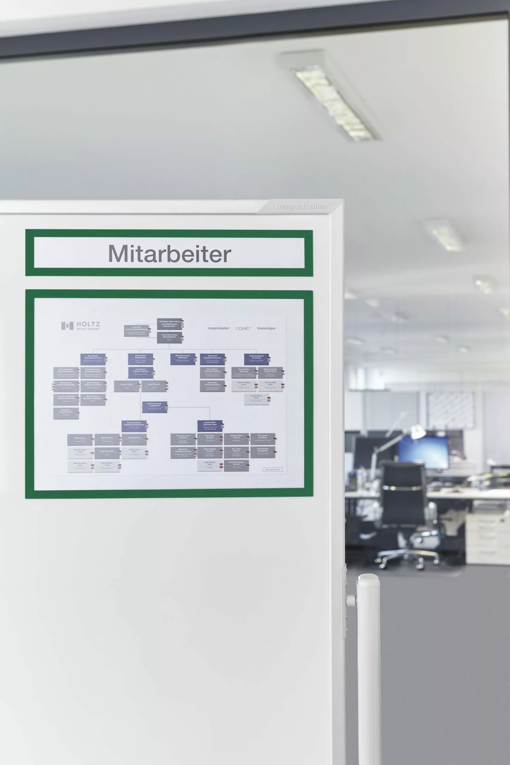 Farbiger Überschiften-Rahmen zum Beschriften von Whiteboards: Für Büro, Lager + Fertigung, ideal auch für TQM-Infotafeln Magnethaftend auf allen eisenhaltigen Oberflächen Schützt Informationen + verleiht ihnen den angemessenen Rahmen Überschriftenwechsel schnell + einfach möglich: Eine Ecke anheben – Dokument wechseln – Ecke loslassen – fertig! Größe: 232 x 52 mm, A4 hoch/A5quer VE = 5 Stück.