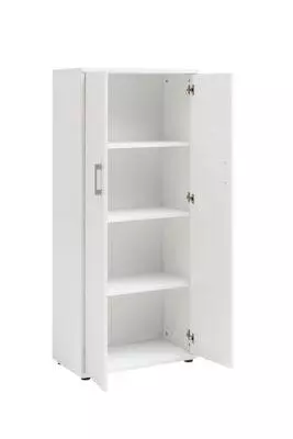 Die Oberflächen sind mit Melaminharz der Güteklasse E1 beschichtet und dadurch besonders robust. Die Bügelgriffe sind aus hellgrauem Kunstoff hergestellt. Die drei Fachbödem haben eine Stärke von 1,6cm und bieten somit auf insgesamt 4 Ordnerhöhen jede Menge Platz. Um Deinen Boden vor Gebrauchsspuren zu schützen, ist die Unterseite des Mehrzweckschranks mit vier Gleitern versehen worden. Der Aufbau ist einfach und die Aufbauanleitung sehr leicht verständlich. Der Aktenschrank bietet genügend Platz und Sichtschutz für Akten oder auch andere Unterlagen. Die melaminharzbeschichteten Oberflächen lassen sich leicht reinigen.