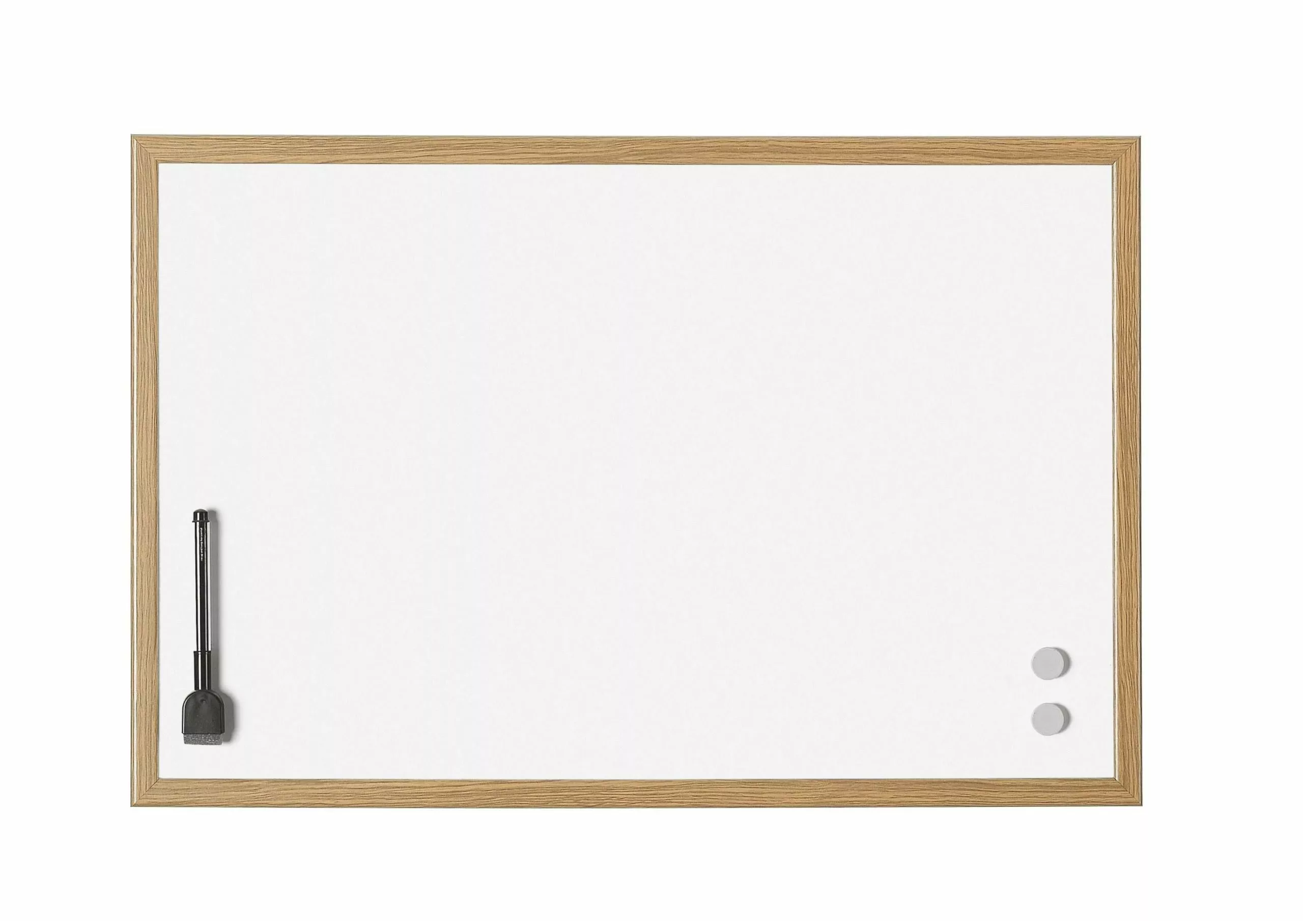 magnetoplan Schreibtafel mit Holz-Rahmen und Zubehör, 1000 x 600 mmr: Oberfläche aus lackiertem Stahl (Stärke: 0,2 mm) Magnethaftend, mit Boardmarkern beschreibbar. Trocken oder feucht abwischbar Mit Rahmen aus Kiefernholz (Stärke: 17 mm) Hoch + quer nutzbar Inkl. 1 Boardmarker, 2 Magneten (schwarz, Ø 20 mm) + Montagezubehör.