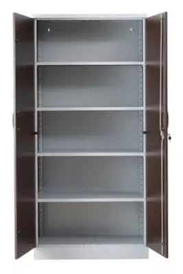Der Aktenschrank ist komplett aus Metall gefertigt und wurde zusätzlich mit ansprechenden Holztüren ausgestattet. Die Produkte der Beetle Serie sind sind sowohl für den privaten als auch für den gewerblichen Einsatz bestens geeignet. Die Oberflächen sind aus elektrostatisch pulverbeschichtetem Metall hergestellt und dadurch besonders robust. Die vier Fachböden sind frei verstellbar. Bei gleichmäßig verteilter Last, beträgt die Traglast pro Ebene 45 kg. So bietet der Metallschrank auf insgesamt fünf Ordnerhöhen reichlich Stauraum. Der Schrank ist zusätzlich abschließbar und es werden zwei Schlüssel mitgeliefert.