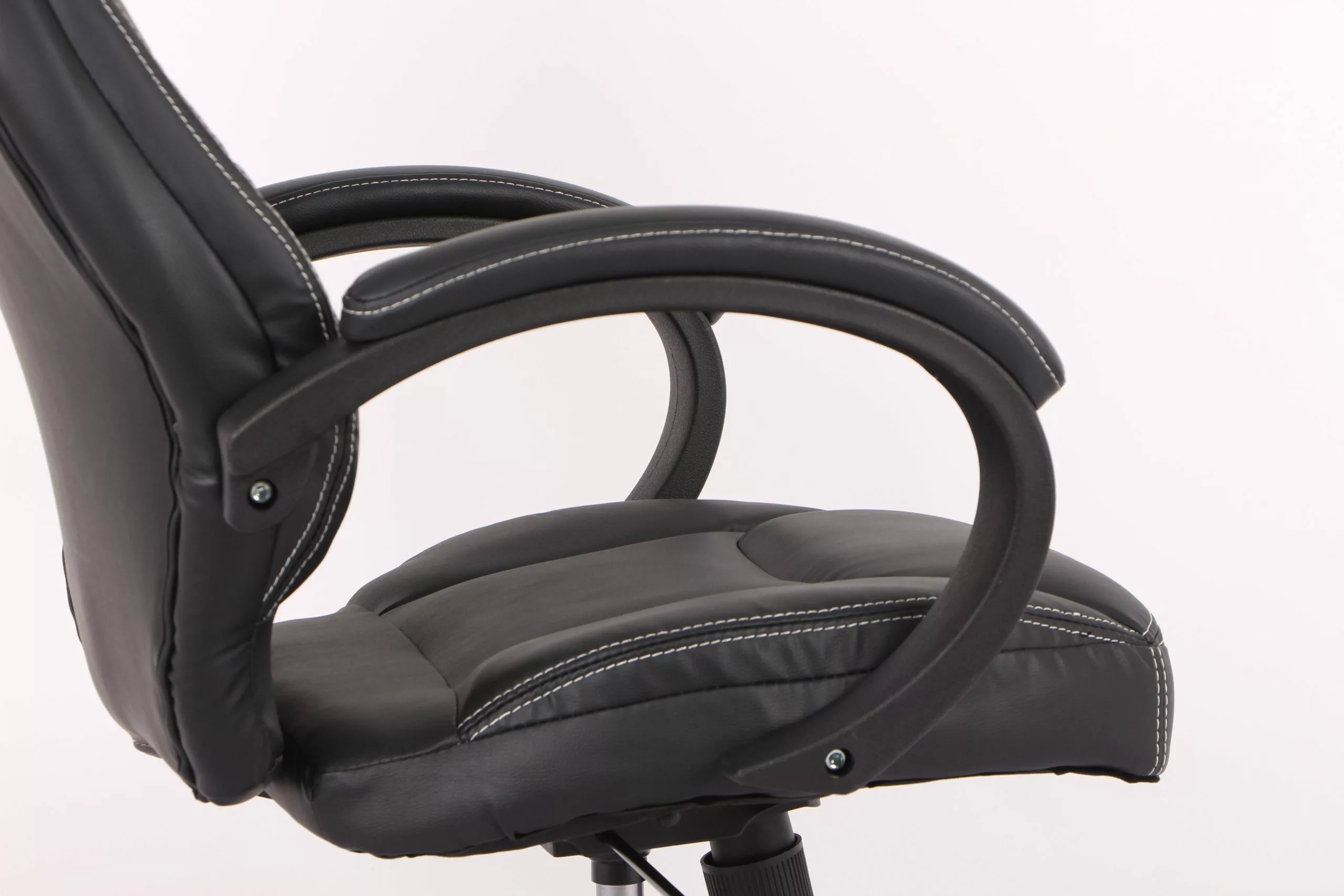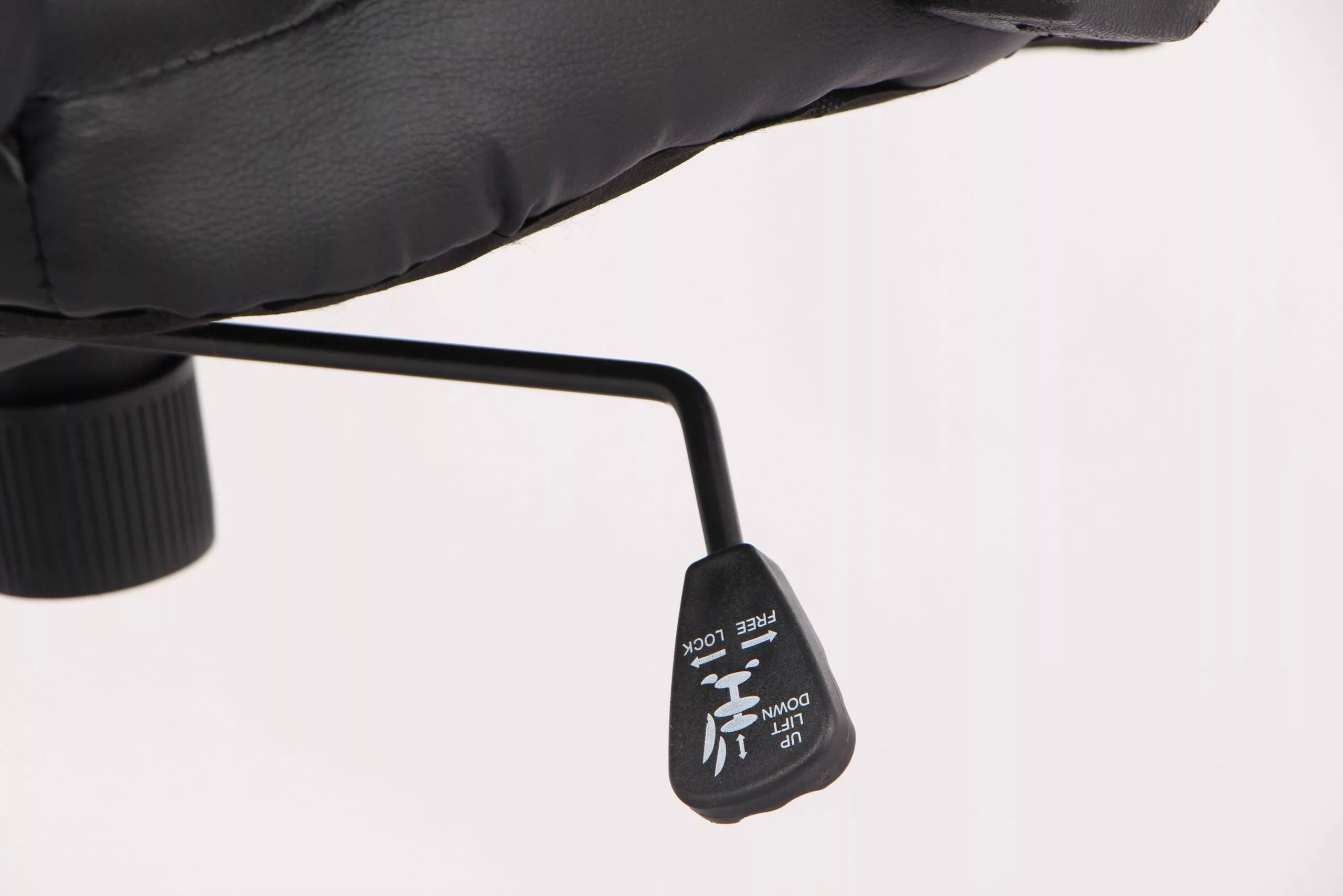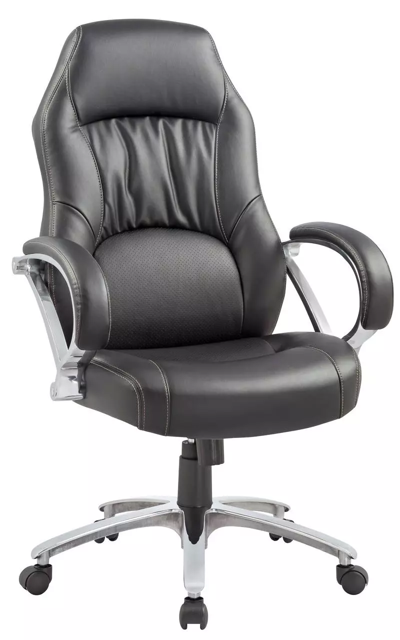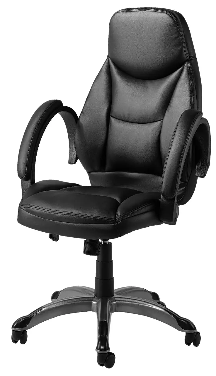 Der Sigma Chefsessel EC-11 in Schwarz verfügt über eine einfache Wippmechanik und über gepolsterte Armlehnen. Das Fusskreuz ist aus Kunststoff, an denen gebremste Sicherheitsrollen montiert werden. Der Chefsessel ist aus Polyurethan und einer Oberflüche aus Leder. Der Chefsessel ist DIN EN 1021-1 und -2 zertifiziert.