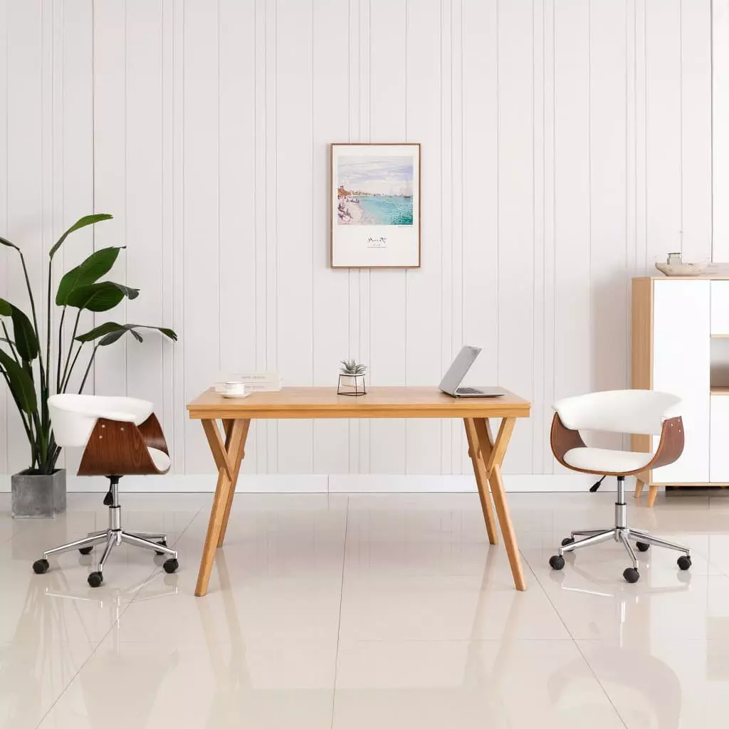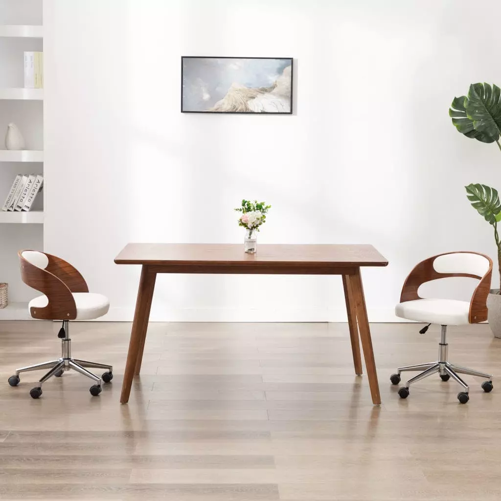 Es bietet Ihrer Familie einen komfortablen Ort, um im Arbeitszimmer zu arbeiten oder sich im Wohnzimmer auszuruhen. Sitz und Rückenlehne sind ergonomisch geformt, mit weichem Kunstleder bezogen und mit Schaumstoff dick gepolstert, was den Stuhl sehr bequem macht. Das Holzgestell und die Metallbeine tragen zu seiner Langlebigkeit bei und sind auch ästhetisch ansprechend. Der Stuhl ist um 360 Grad schwenkbar und verfügt über einen höhenverstellbaren Mechanismus mit Gasfedermechanismus.