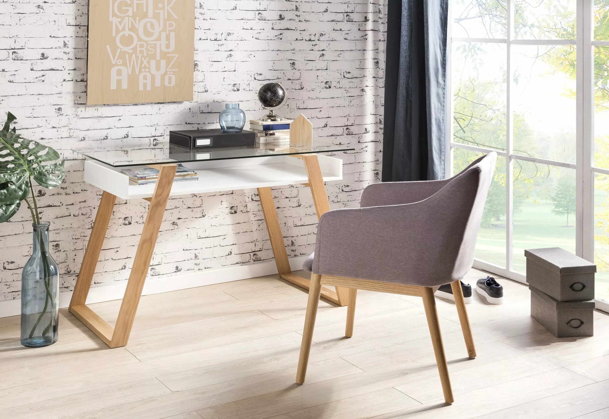 Dieser Schreibtisch ist einfach zu montieren. Wichtiger Hinweis: Die Holzmaserung und -farben variieren von Stück zu Stück, wodurch jedes Möbelstück einzigartig ist. Die Lieferung erfolgt zufällig.