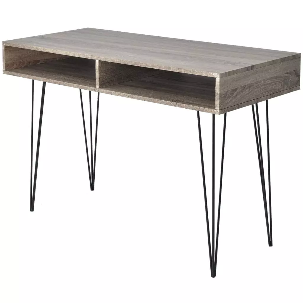 Aus hochwertigem MDF mit einem stabilen Metallrahmen gefertigt, ist dieser Computertisch langlebig und stabil, stilvoll und ästhetisch ansprechend. Mit zwei stabilen Regalen auf der linken Seite ist dieser Schreibtisch sehr praktisch zur Lagerung von Bürozubehör oder zum Austellen von Schmuckstücken.